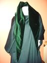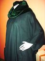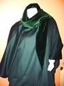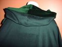 Swing / wide coat , 2 big pockets , velvet lined scarf/ hood. Dark green color.