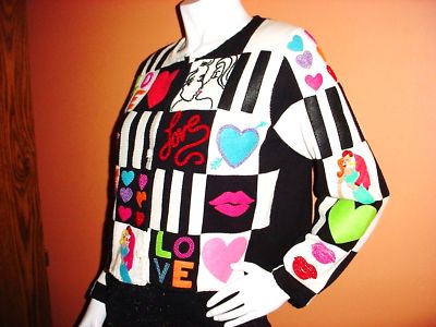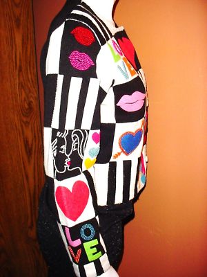 GREAT RaRe " LOVE" colorful knit Sweater / Jacket !