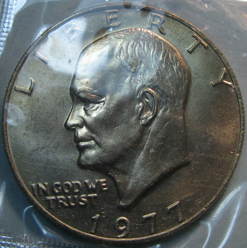 1977 Eisnehower copper-nickel dollar minted in Philadelphia, Pennsylvania.