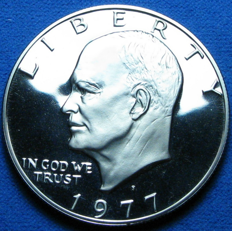 1977S Eisenhower proof copper-nickel dollar minted in San Francisco, California.