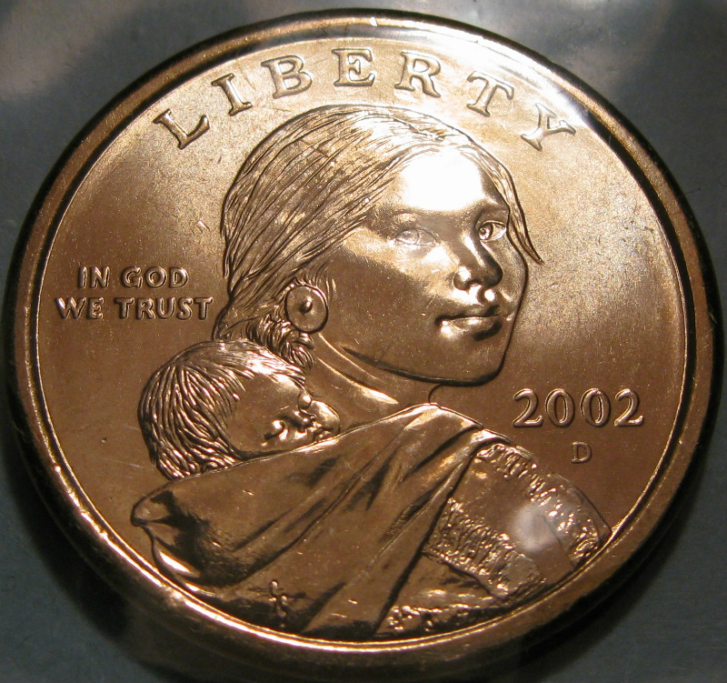 The design of this coin was selected from the 120 entries submitted to a panel appointed by then Treasury Sectary Robert Rubin. They adopted the motif of Sacagawea a young Native American Shoshone as conceived by artist Glenna Goodacre. On her back she carries her infant son, Jean Baptiste. The reverse shows the eagle in flight that was designed by mint engraver Thomas D. Rodgers Sr.
