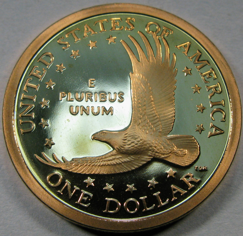 The design of this coin was selected from the 120 entries submitted to a panel appointed by then Treasury Sectary Robert Rubin. They adopted the motif of Sacagawea a young Native American Shoshone as conceived by artist Glenna Goodacre. On her back she carries her infant son, Jean Baptiste. The reverse shows the eagle in flight that was designed by mint engraver Thomas D. Rodgers Sr.