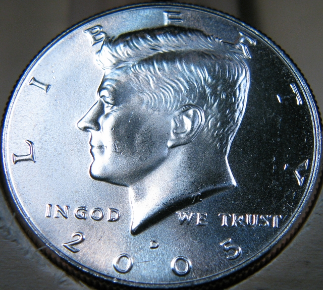 2005D Kennedy half dollar minted in nickel clad copper core metal content. Coin will come in a paper or vinyl flip, or a 100% archival quality plastic coin edge holder.