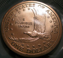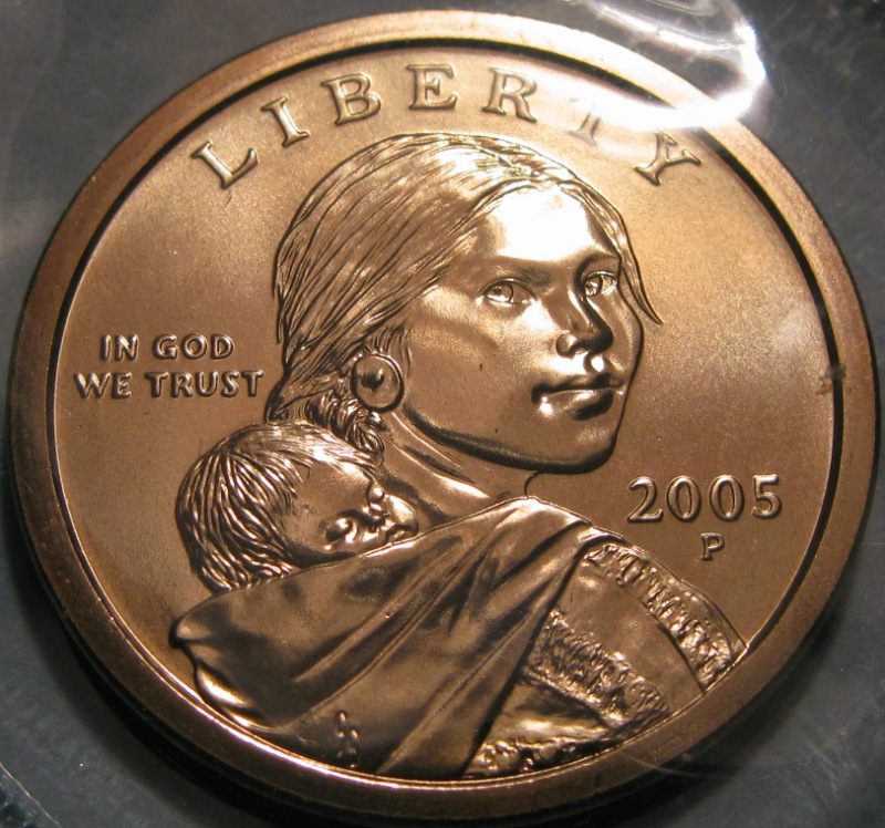 The design of this coin was selected from the 120 entries submitted to a panel appointed by then Treasury Sectary Robert Rubin. They adopted the motif of Sacagawea a young Native American Shoshone as conceived by artist Glenna Goodacre. On her back she carries her infant son, Jean Baptiste. The reverse shows the eagle in flight that was designed by mint engraver Thomas D. Rodgers Sr.