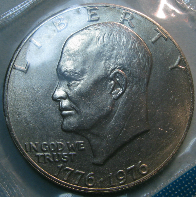 1976 Eisenhower copper-nickel dollar Type II minted in Philadelphia, Pennsylvania.