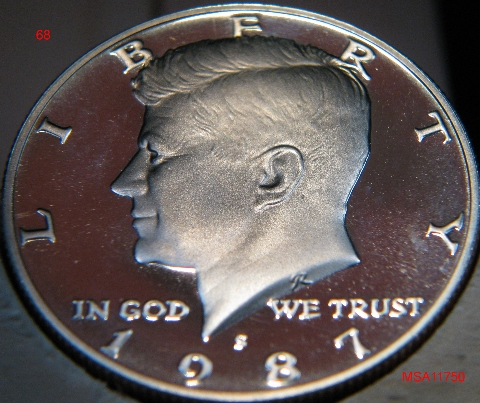 1987S Kennedy proof half dollar minted in nickel clad copper core metal content. Coin will come in a paper or vinyl flip, or a 100% archival quality plastic coin edge holder.