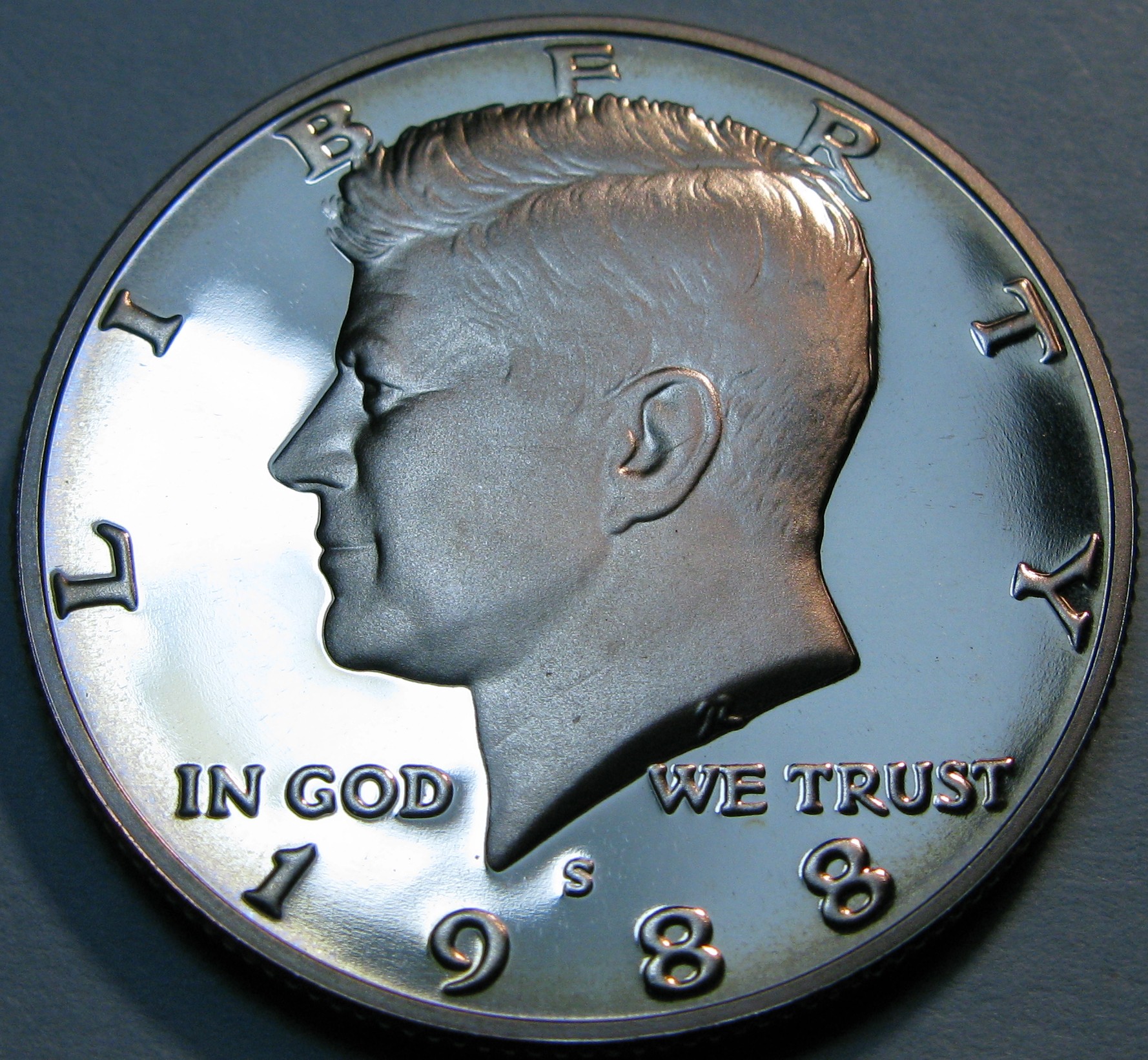 1988S Kennedy proof half dollar minted in nickel clad copper core metal content. Coin will come in a paper or vinyl flip, or a 100% archival quality plastic coin edge holder.