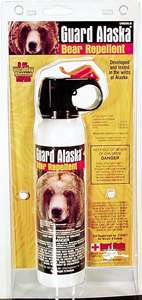 Guard Alaska ultra hot bear repellent has proven so effective repelling bears, it is the only one registered with the EPA as arepellent for ALL SPECIES of bear! It is absolutely the most effective and powerful bear defense spray available today. It is environmentally safe! Does not contain flammable or ozone depleting substances. The formula is scientifically proven superior, and endorsed by the Alaska Science & Technology Foundation. 260 grams. Range: Approximately 15-20 feet. Dimensions: 8-3/4" x 2" BR-9.