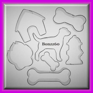 This auction is for a set of 7 all-metal tin cookie cutters. These cookie cutters are all made in the USA. Included in this set are one (1) 4.5" Labrador Retrevier, one (1) 2" Dog Bone, one (1) 4.5" Dog Bone, one (1) 3.5" Dog Bone, one (1) 3" Fire Hydrant, (1) 3.5" Dog House and one (1) 4" Dog Paw. All sizes are approximate. Please contact me with any questions.