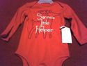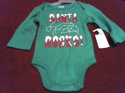 Red outfit says santas little helper and has rudolph on it.Green one says santa rocks and has santa on it.Please let me know which color you want.Both are new with tags.