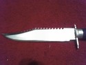 Sheath is not included with this knife.Comes with a sharpening stone,compass,and a survival pack(matches,hook ect...)Knife is new.Its never been used.It measures 14 1/2" long.Blade is 9" long.Handle has tjreads on it for a better grip.Looks just like Rambo knife.Sharpening stone included.