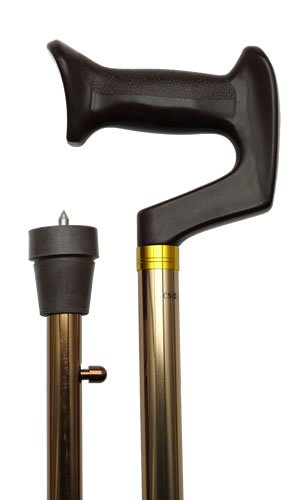 Unisex orthopedic derby handle, aluminum adjustable shaft, adjusts from 29" - 37" with retractable ice pick bottom. Available in bronze Tip #28008