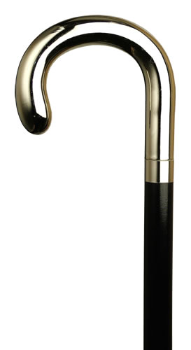 Silver Crook Item#: Men's imported English crook shaped -chrome plated handle, shiny black hardwood shaft, with chrome ring, 36" long with rubber tip #17008.