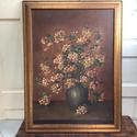 Still Life Oil Painting Floral Bouquet Moody Signed HL Sanger Dogwood Branches