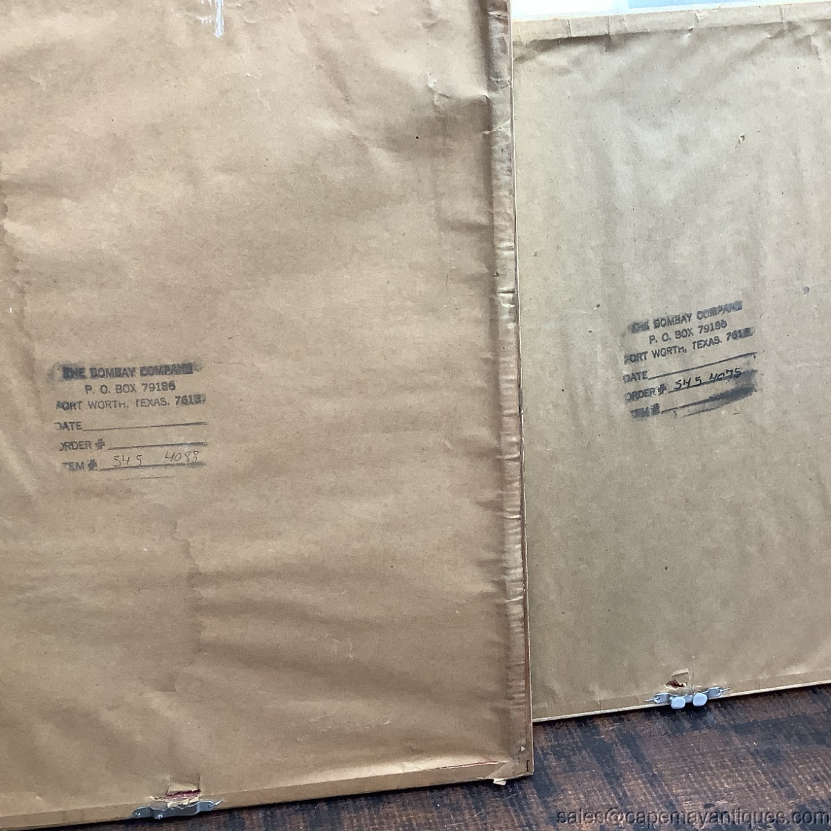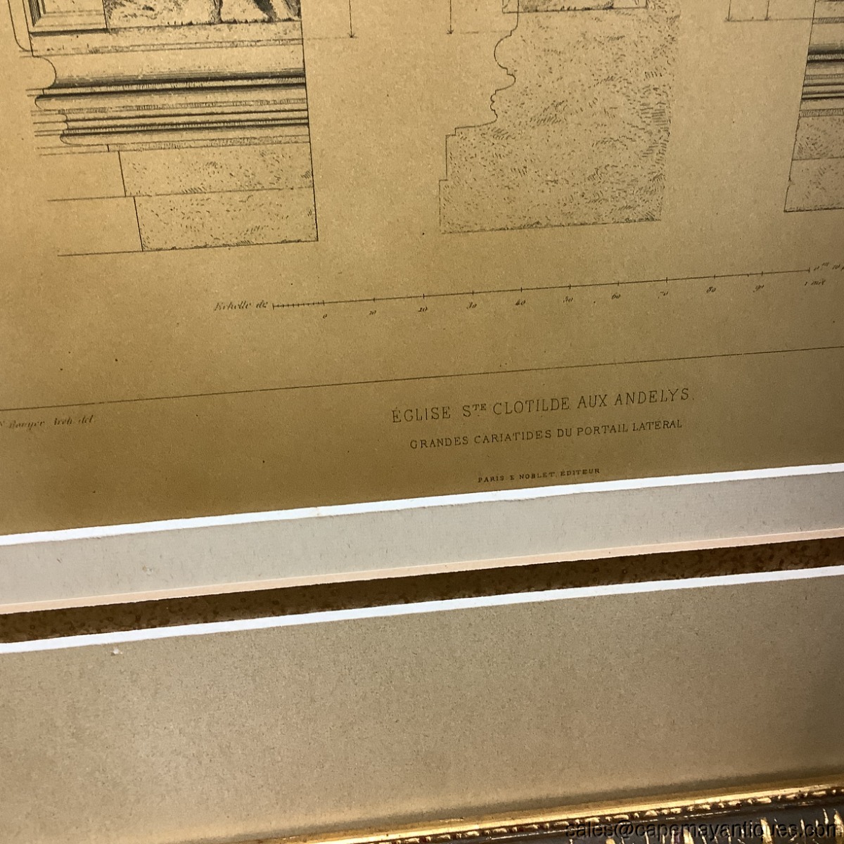 2 Bombay vintage framed prints Eugène Rouyer's L'art Architectural en France De Henri II. These are architectural drawings, Plates 31 and 32, of France. The frames are 15" by 17.5" wide and the prints are 8" by 10.5". One does not have glass over the print, the vertical portrait orientation. Gold frames, tan matting with inner marbled gold finish. Good condition overall, no fading, pots or stains, just the protectie glass missing on one.