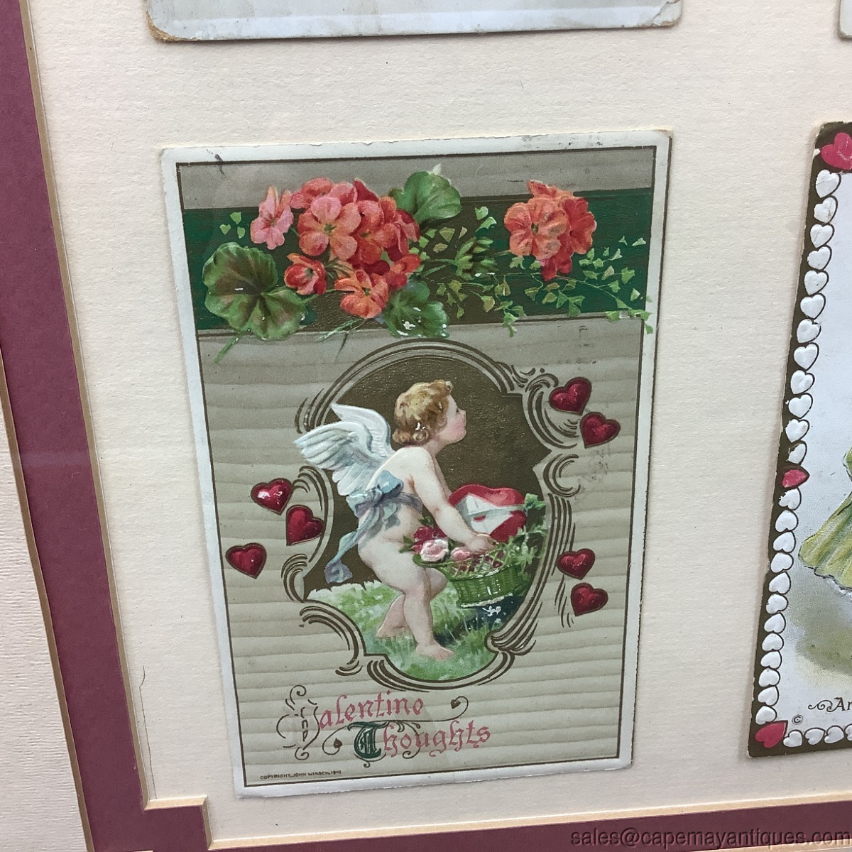 4 Antique Framed Valentines Day Cards Young Children Cupid Angels Matted Framed