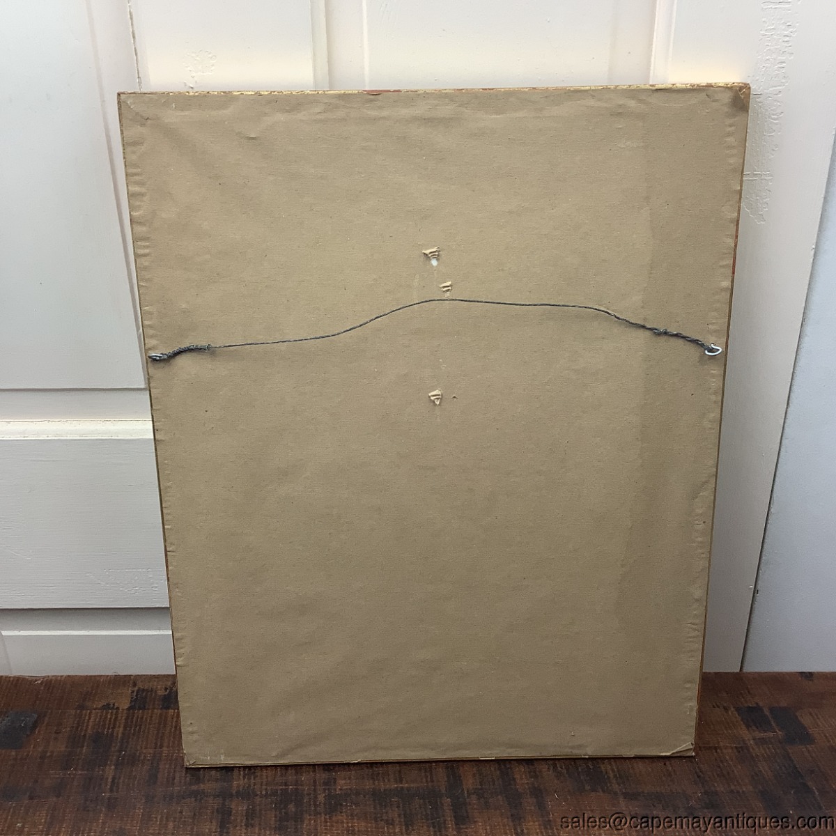 Lovely set of 4 antique Valentines day post cards mounted, matted and framed. I do not know how they are mounted but all corners do not seem to be firmly installed so they could be removed. The frame measures 19" by 15". Each card is approximately 5.5" by 3.5". The cards show typical minor wear such as tiniest wear to corners, one fold on the blue upper hand right one. See images. Frame is very worn with loss of gold showing red coming through plus there is a water stain mark on the entire bottom. This does not touch any of the cards.