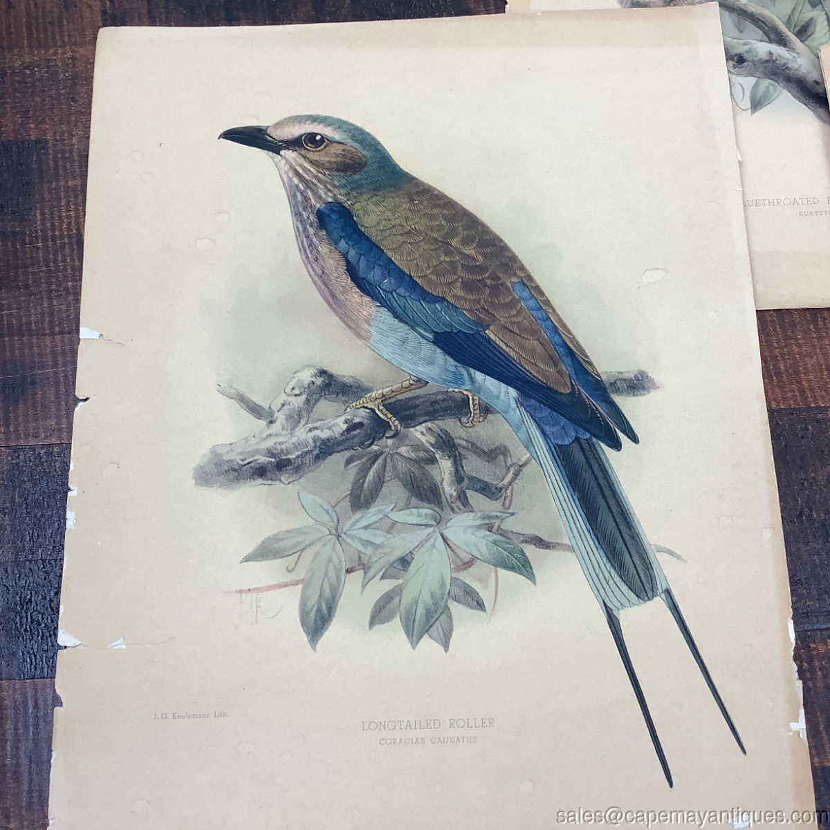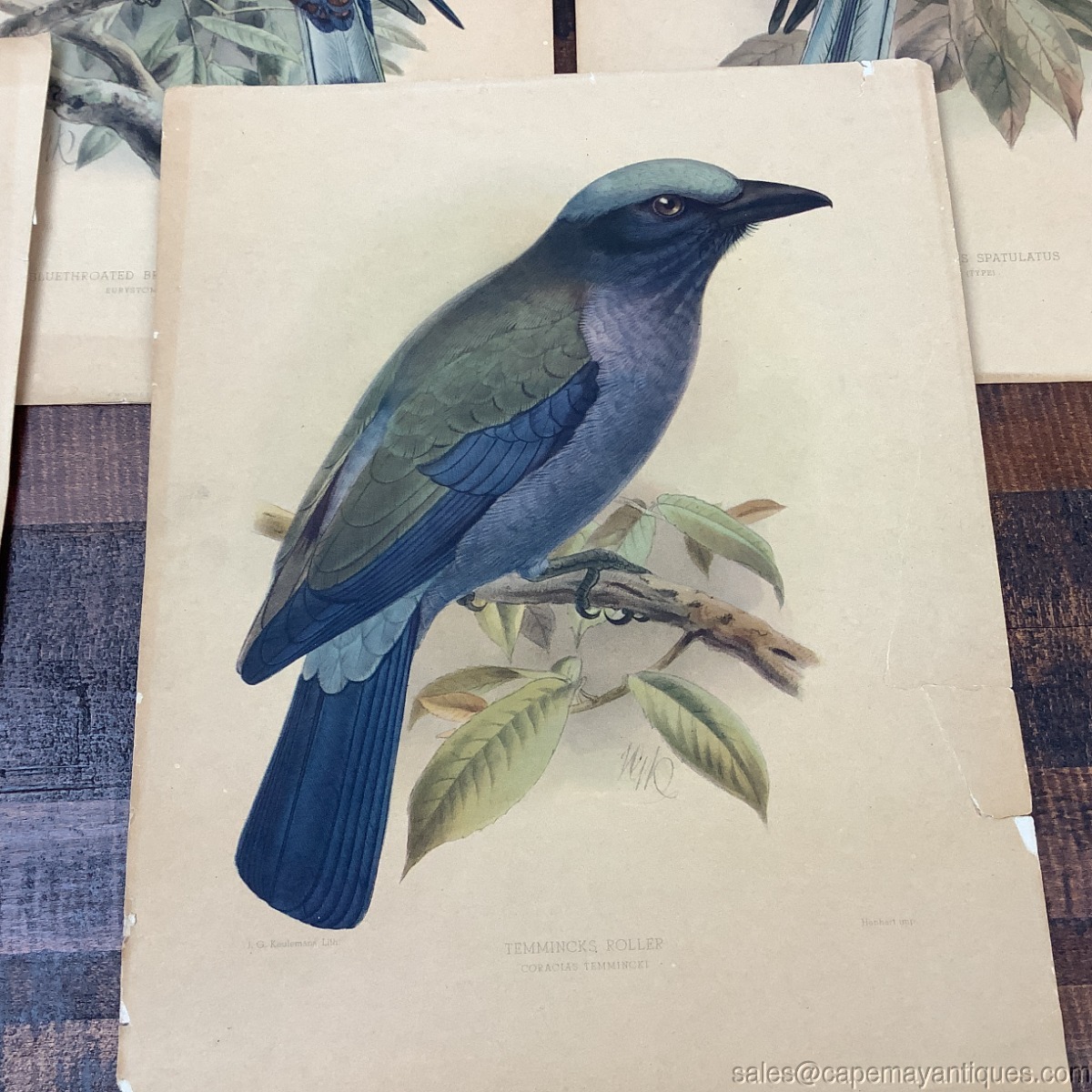 4 JG Keulemans Bird Lithographs 19th C Dutch Ornithological Rollers Spatulatus