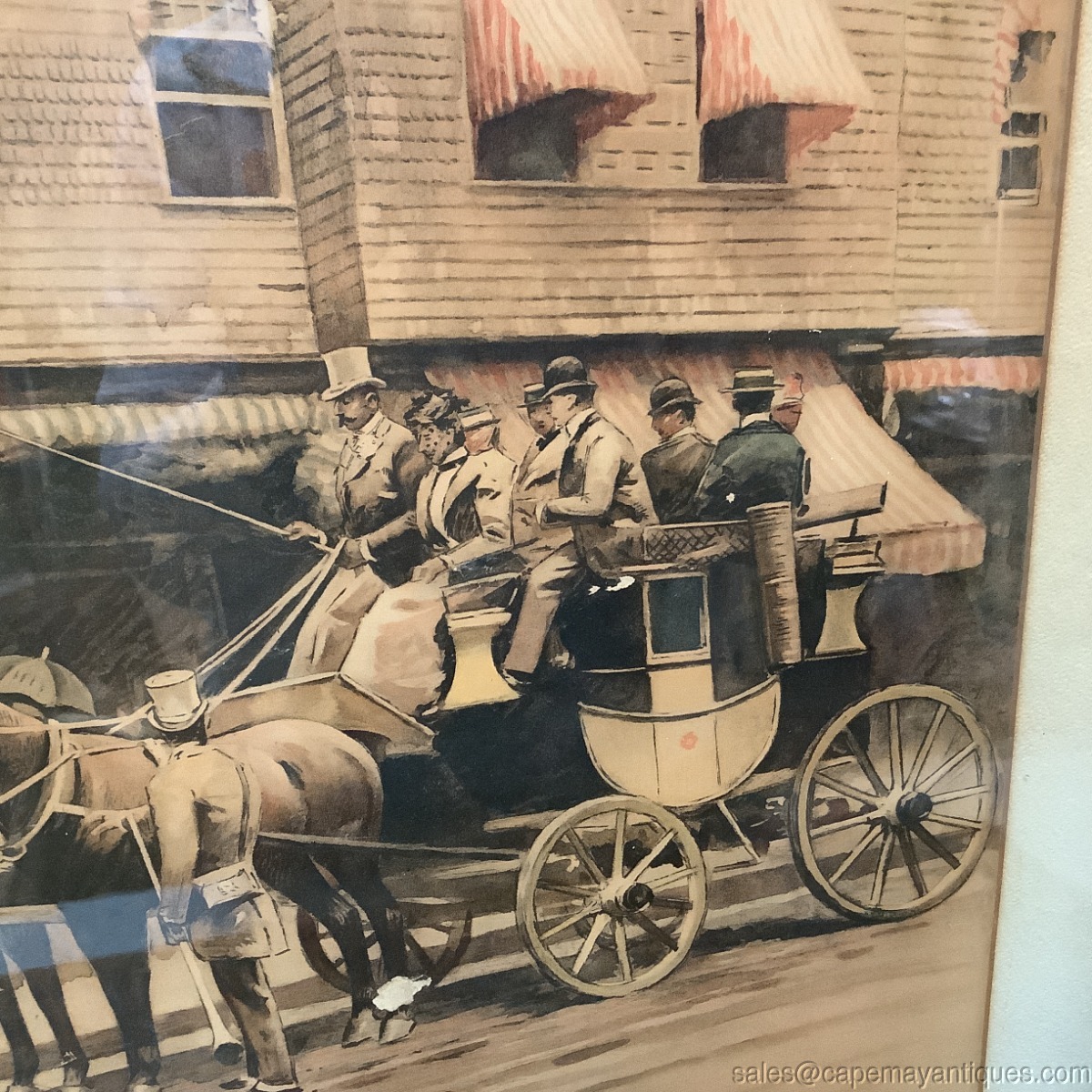 Antique Horse Carriage Print The Road Coach Acquidneck to Casino Newport 1892