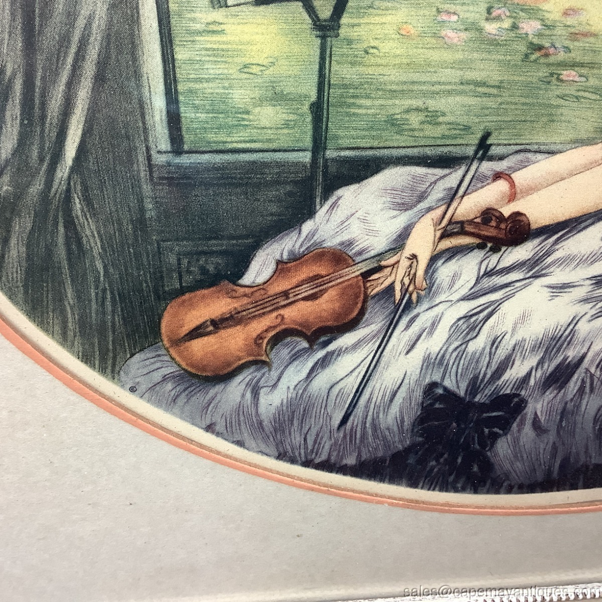 Art Deco Print Female in Gown Playing Violin at Open Window Springtime Framed