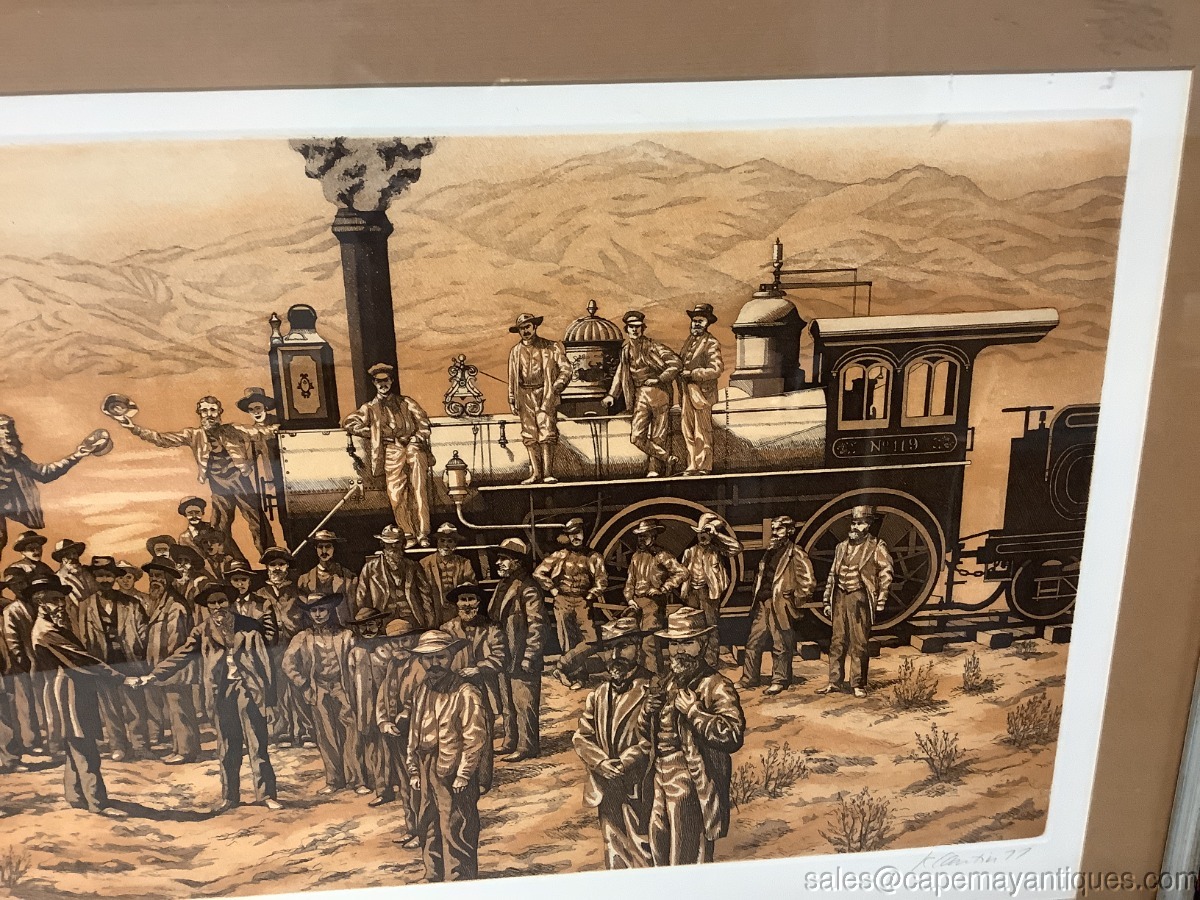 East Meets West Signed Print K. Cantin 1977 Railroad Golden Spike Ceremony Lmtd