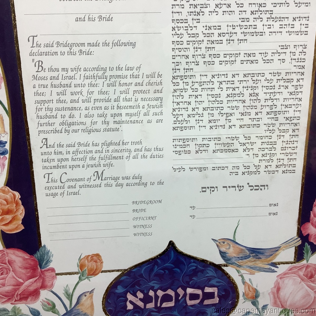 Framed Blank Shir Hashirim Ketubah by Amalya Nini Jewish Marriage Contract