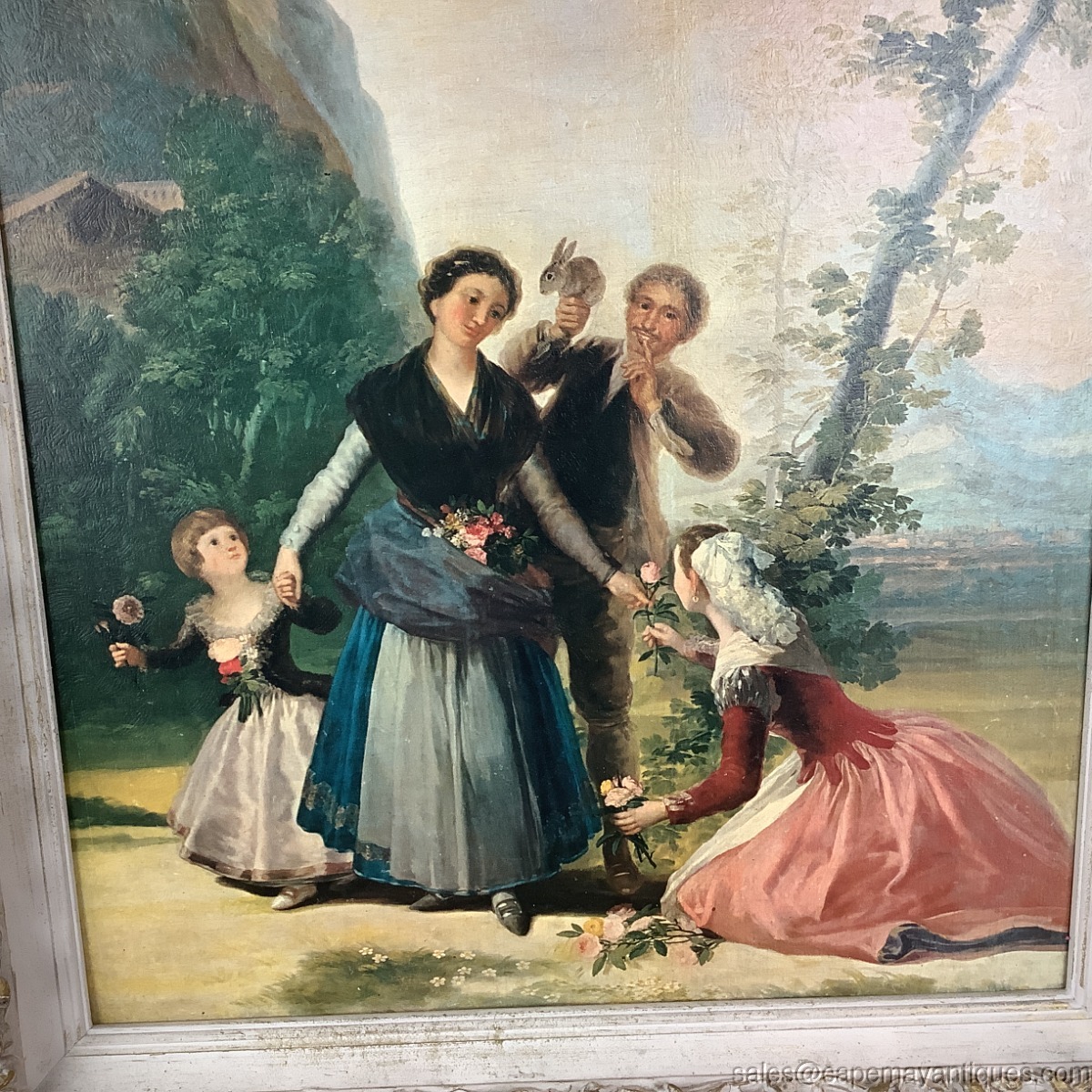 Goya Spring Flower Girls Print Baroque Rococo Carved Frame Girls Man w Rabbit