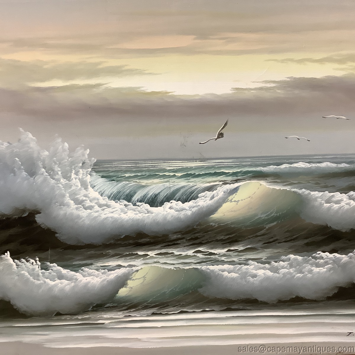 Oil Painting Seascape Nautical Crashing Waves Seagulls MCM Signed T or J Winslow