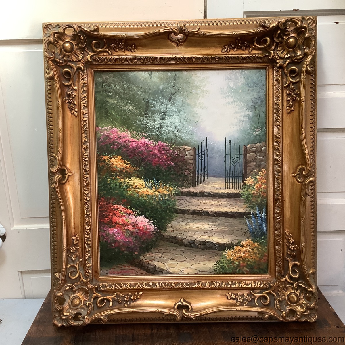 Painting Print Large Artwork Garden Path Entrance Gold Frame Reproduction Signed