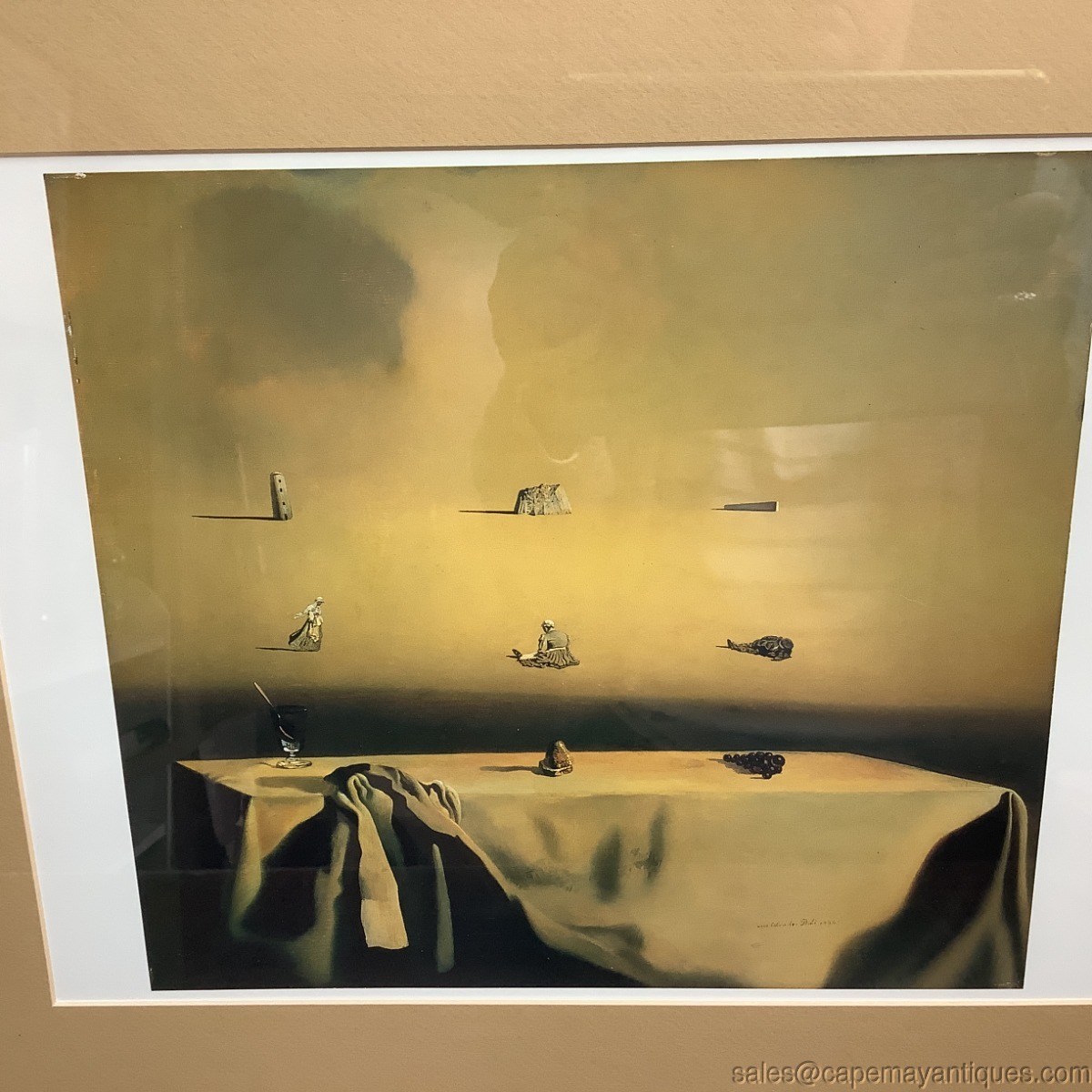 Protected under glass and framed, this print measures 11" by 10.5", the frame is 20.5" by 16.5". Good clean condition. No other markings to identify if #'s etc.