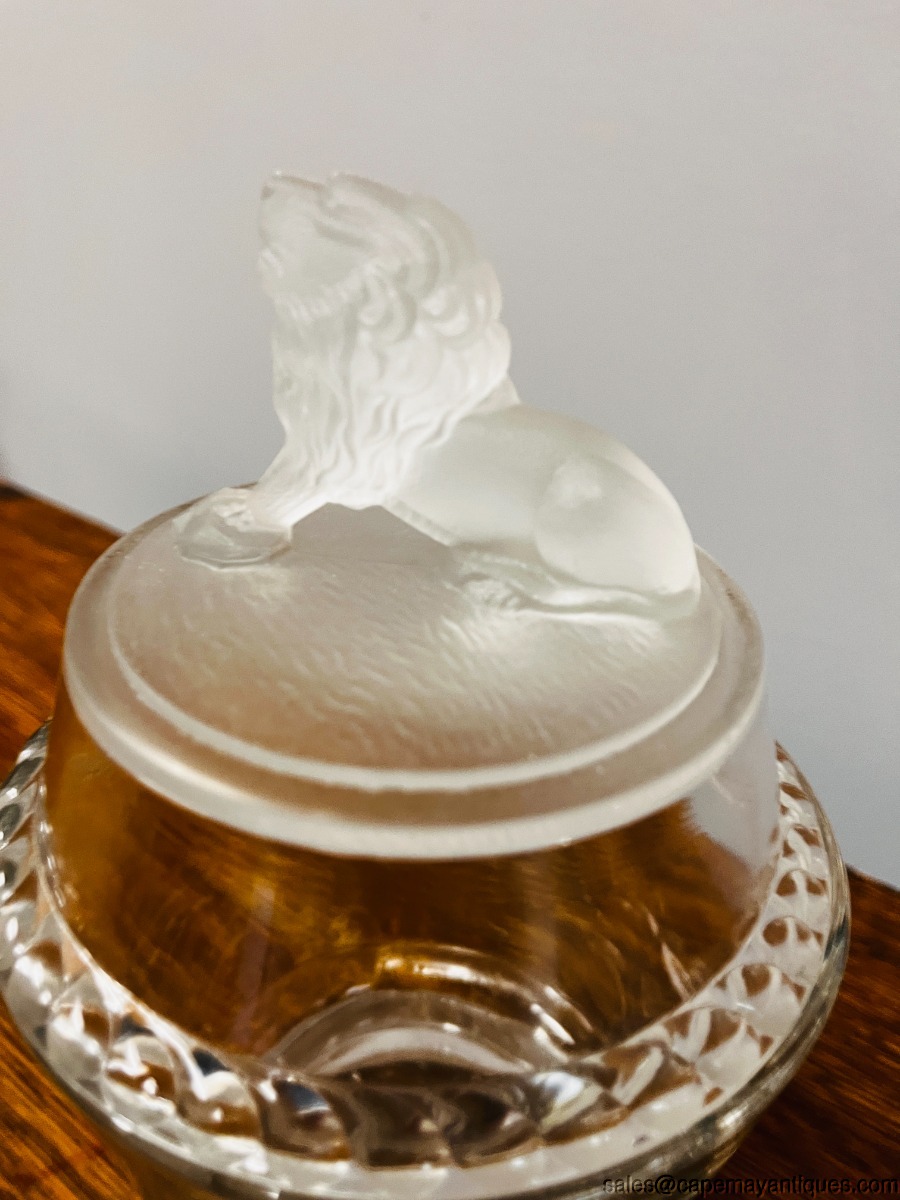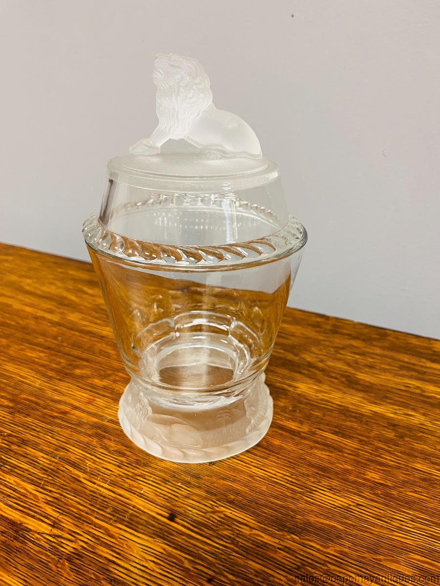 Antique EAPG Covered Sugar Jar Jam Jar Frosted Lion Gillinder & Sons 1877