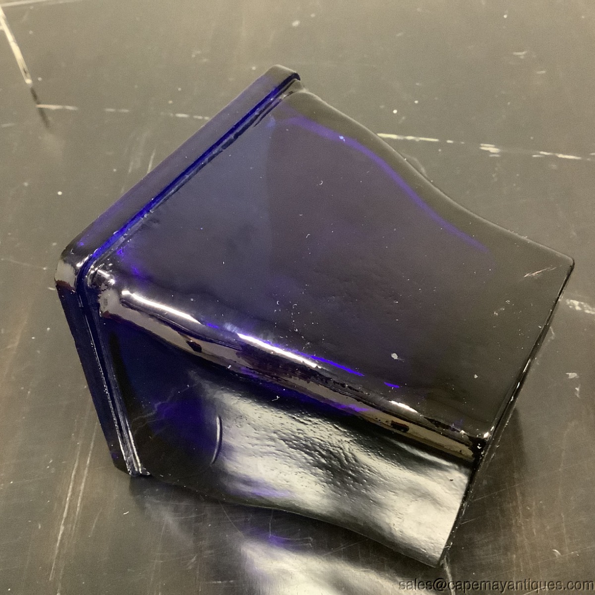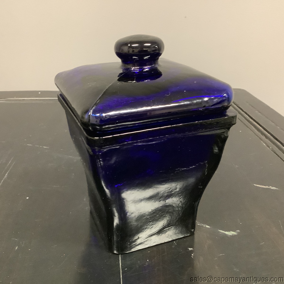 Lovely vintage glass cobalt jar or canister with lid. 7.5" tall and top rim is 4.5" wide by 4.5". There are some marks and scratch lines. see photos. In person, they are very light and hard to notice. No chips or cracks. True blue thick heavy glass.