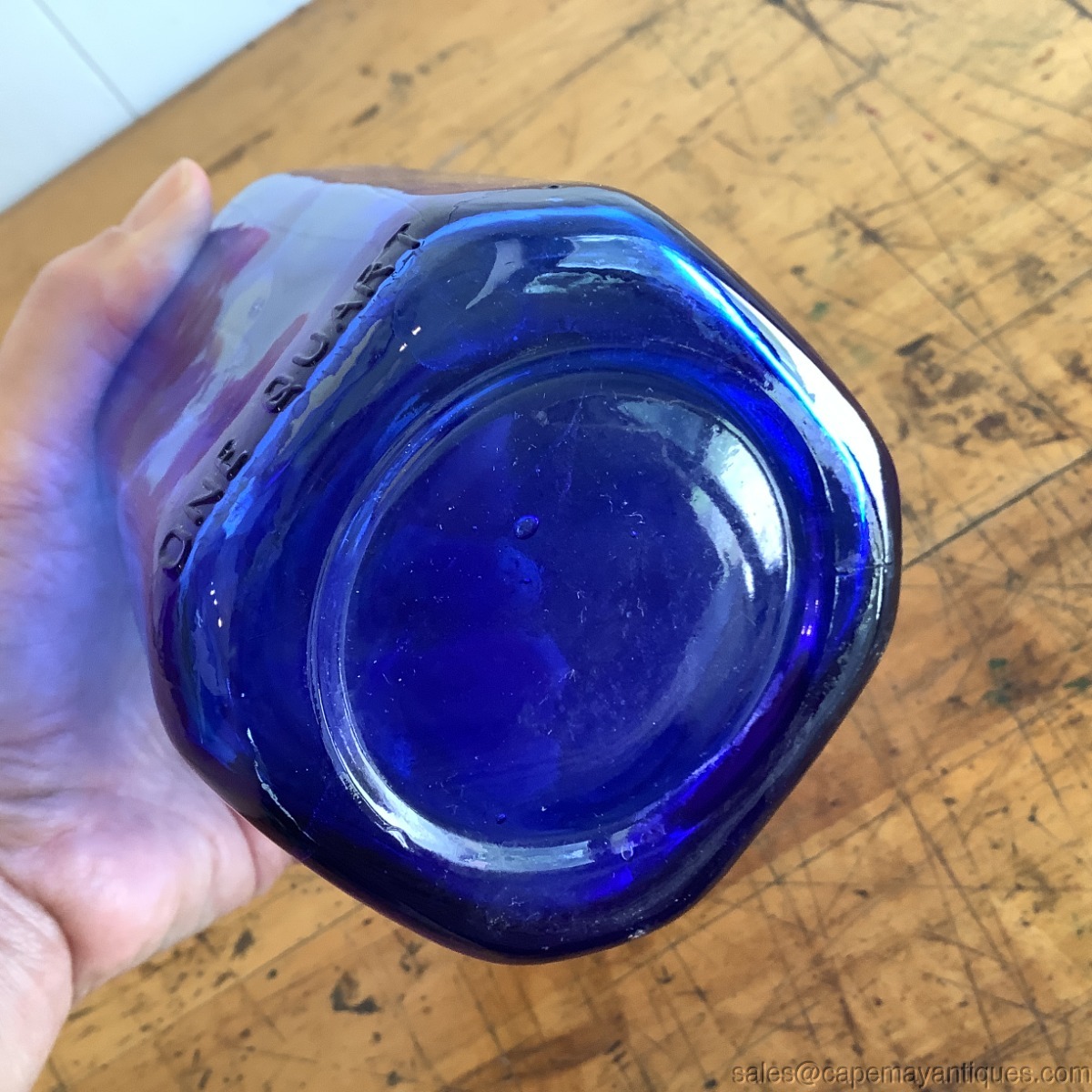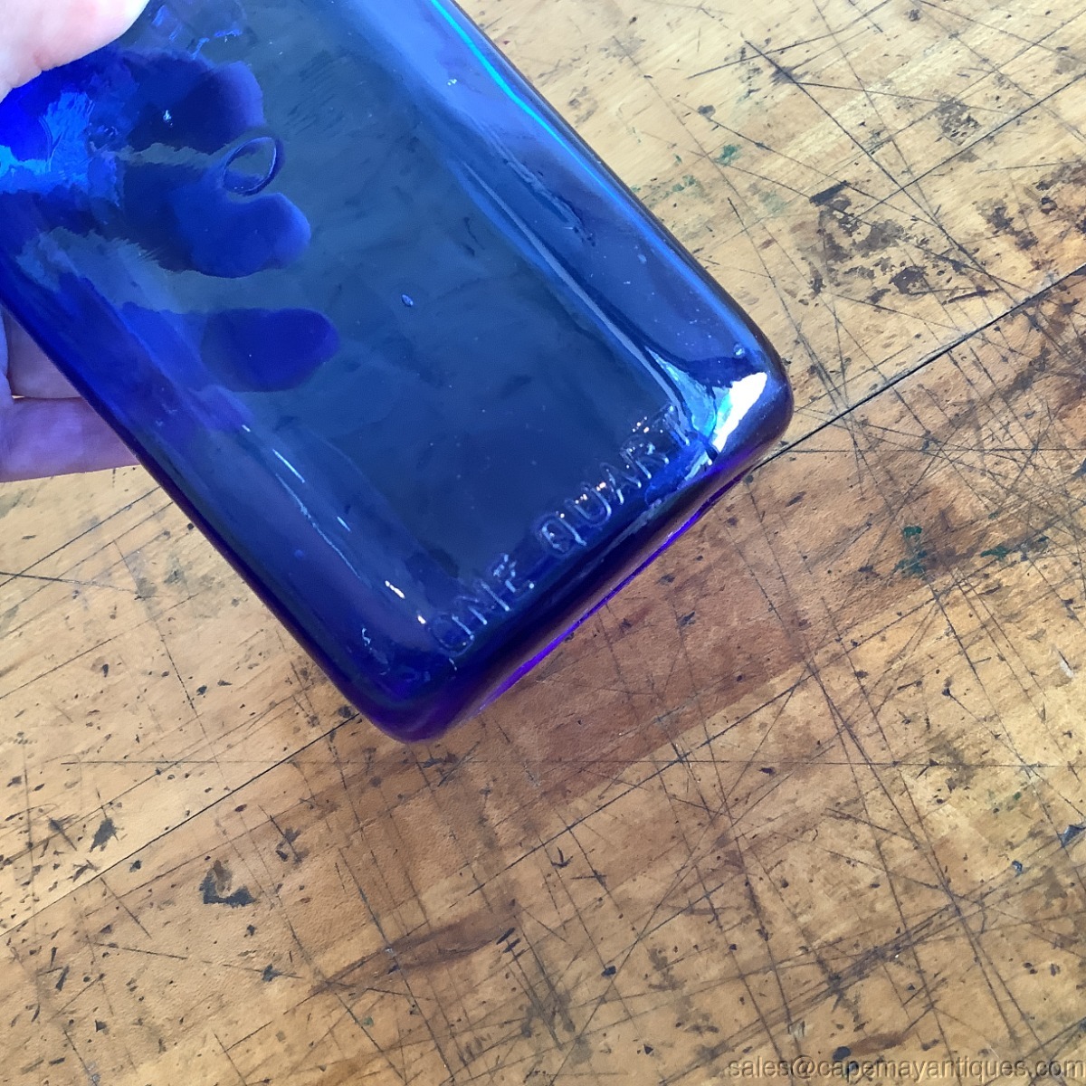 Brookfield Baby Top Bottle Blue Glass 9.75" T Vintage Glass 1 Quart Liquid