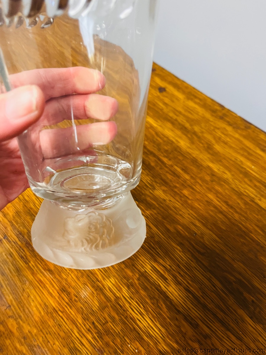 Gilinder & Sons Pitcher Jug Frosted Lion Antique Glass Victorian Philadelphia PA