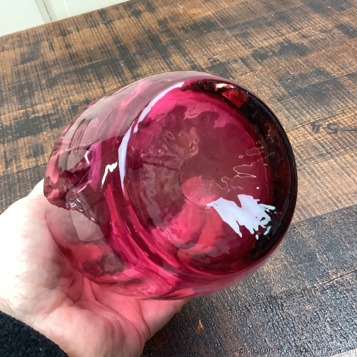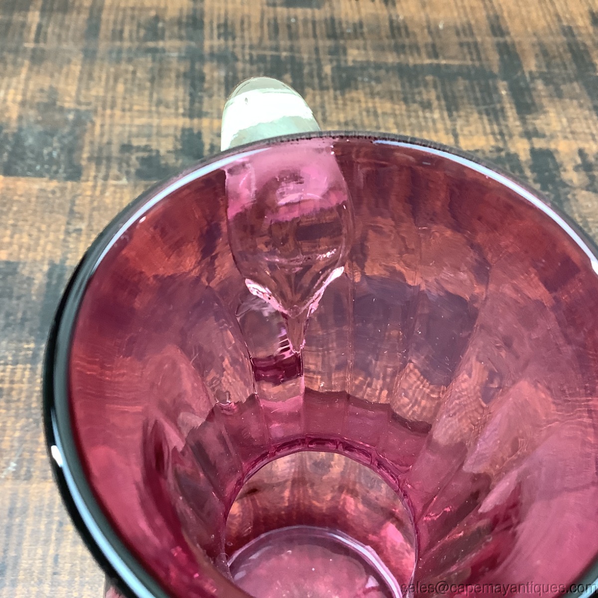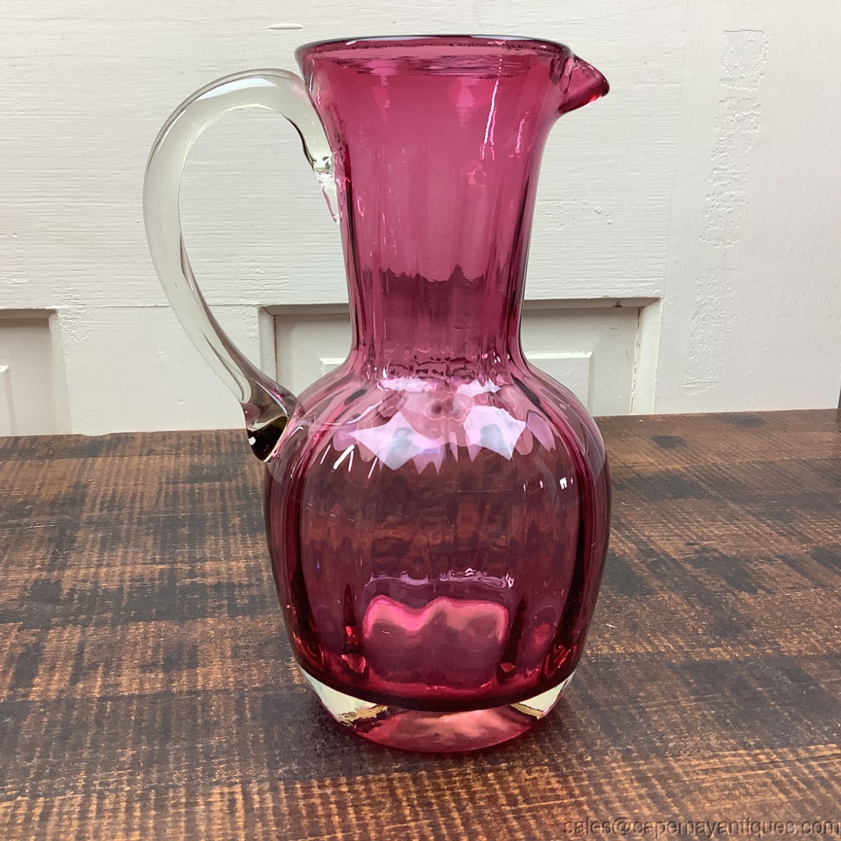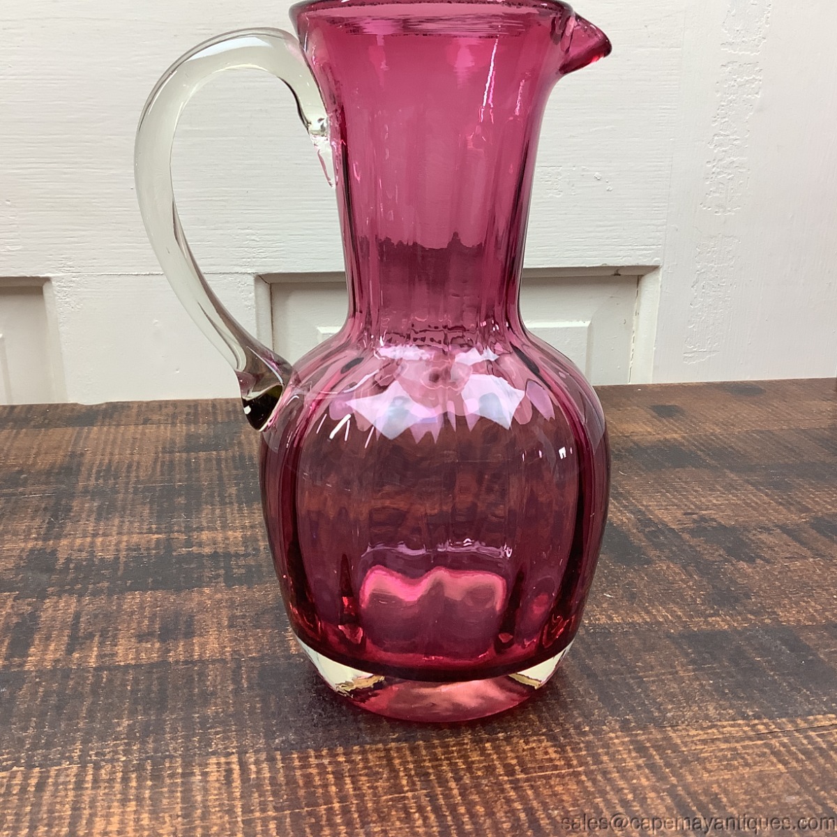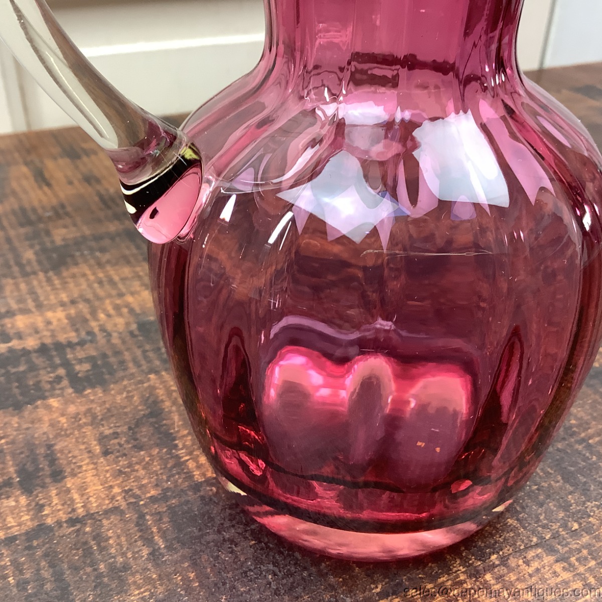 Pilgrim Glass Cranberry Pitcher Jug Pulled Clear Handle 7" Tall Vintage Glass