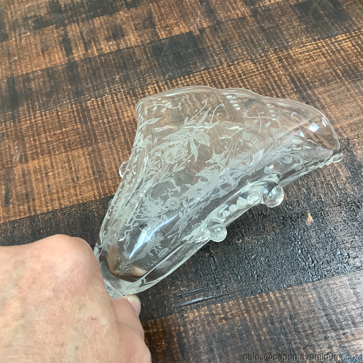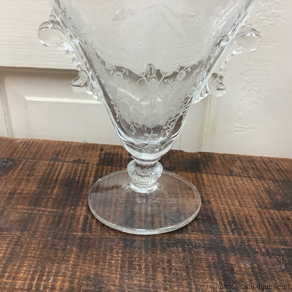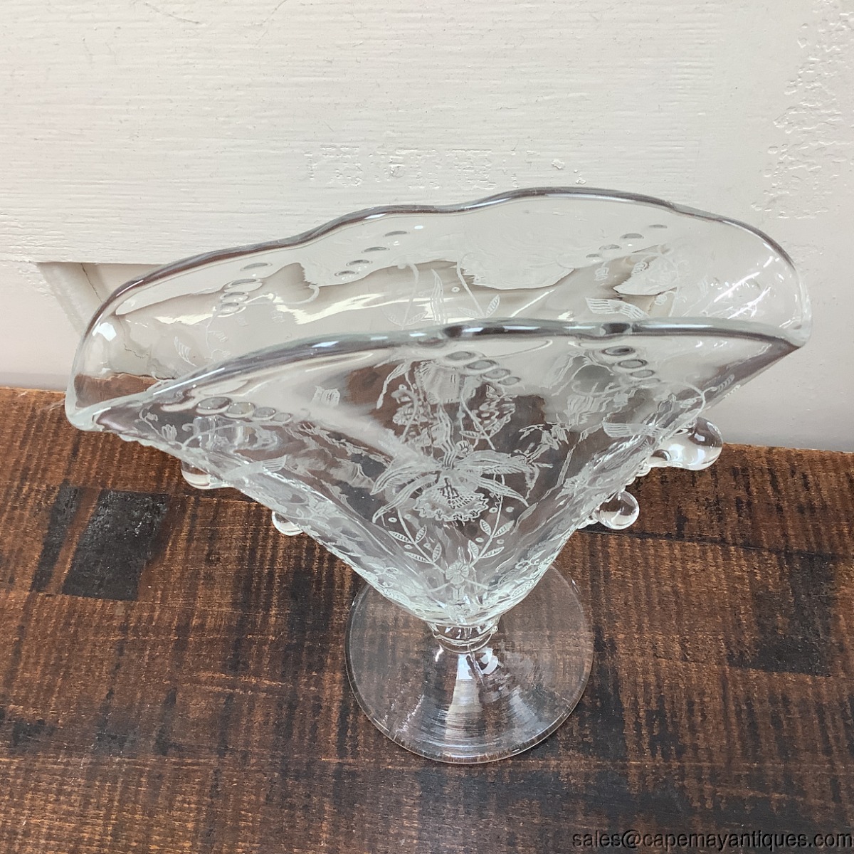 Vintage Heisey Fan Vase Orchid Etched Pattern Waverly Fan Clear Glass 7" tall