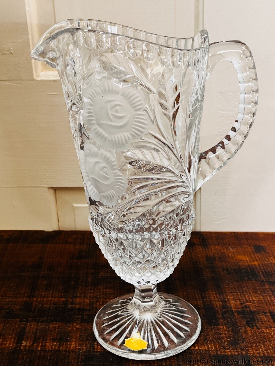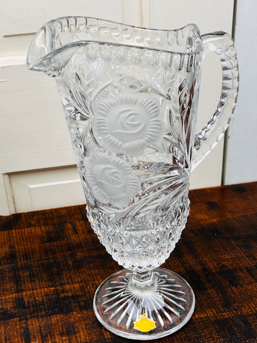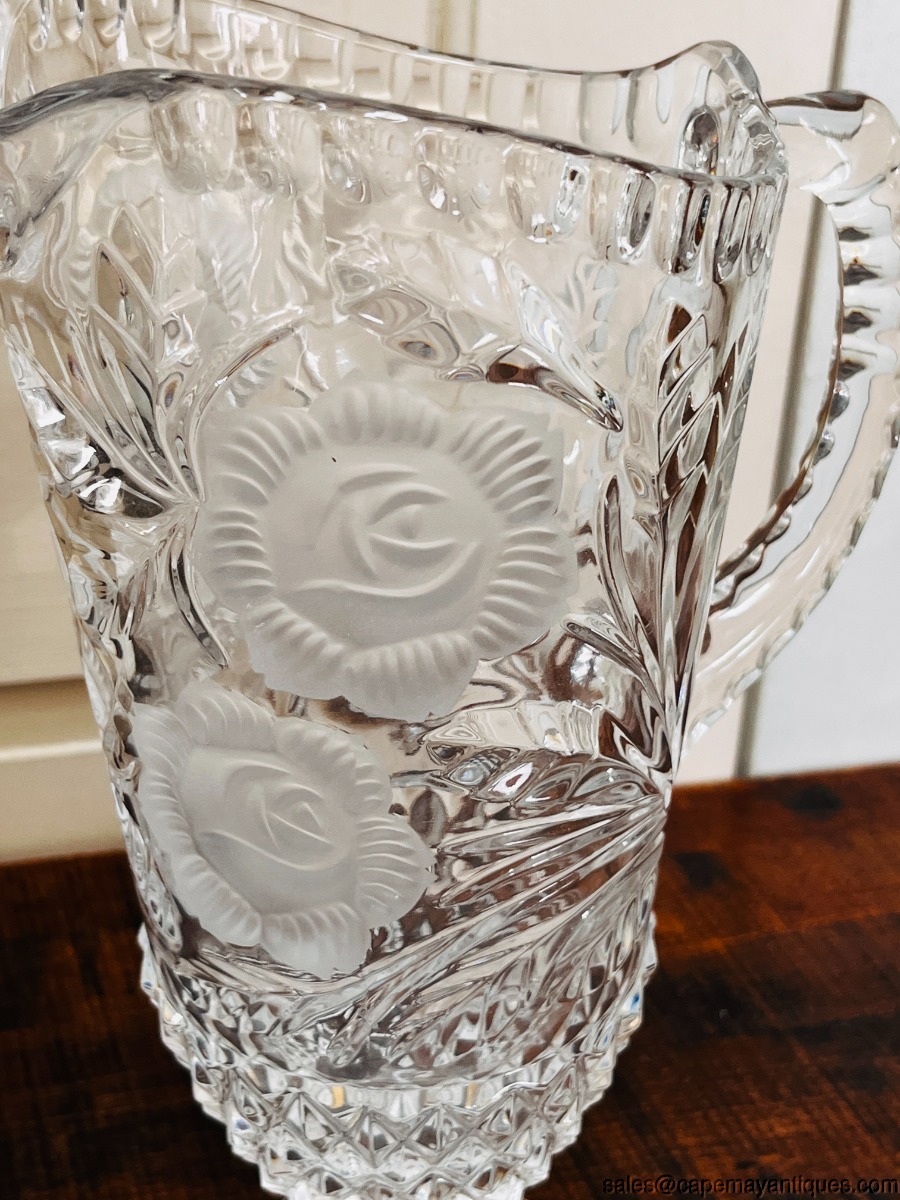 Vintage Lead Crystal Glass Large Pitcher Jug West Germany Frosted Etched Rose