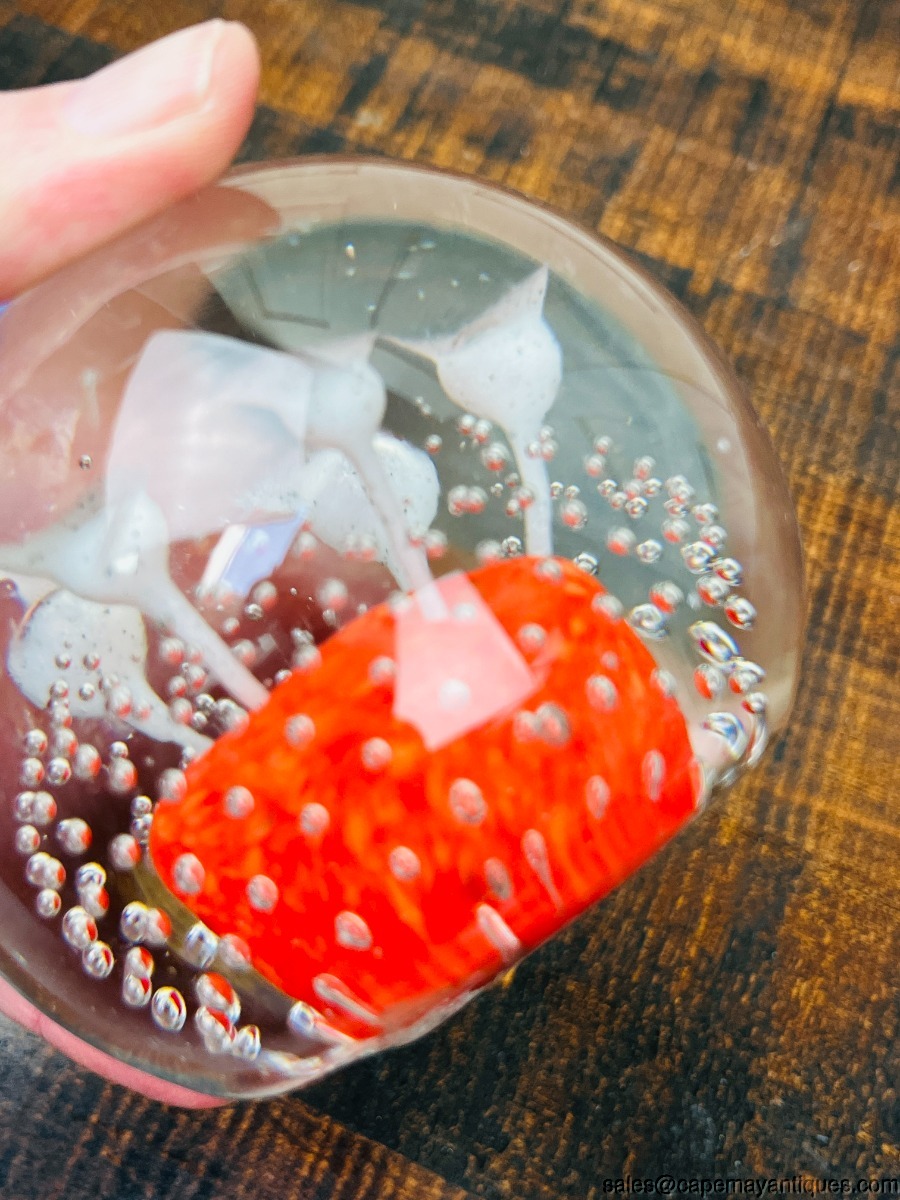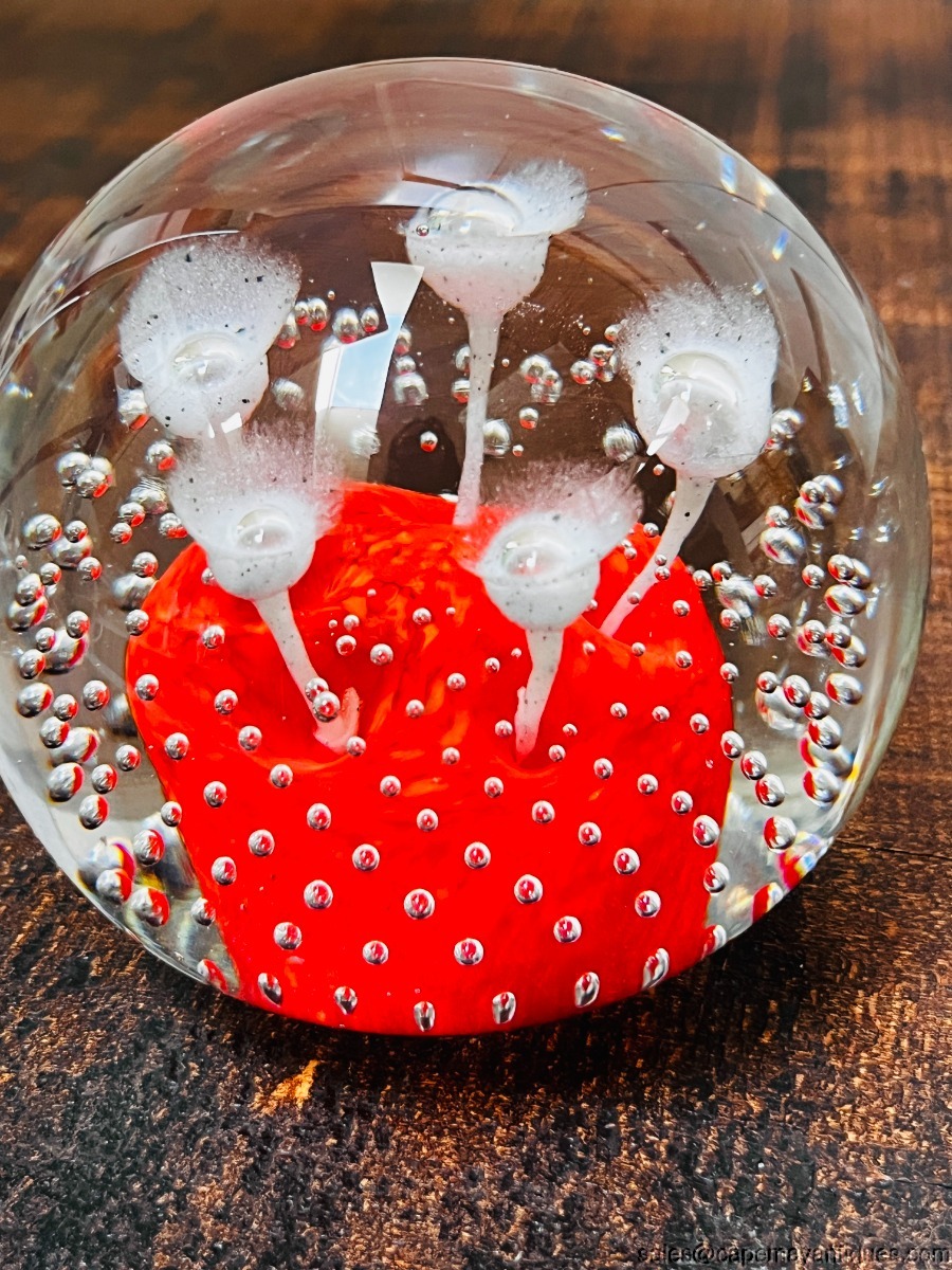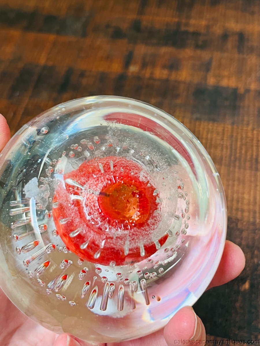 Wheaton Village Large Paperweight Suspended Bubbles Green Center White Flowers