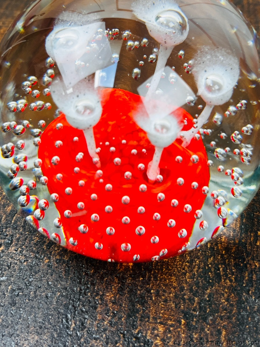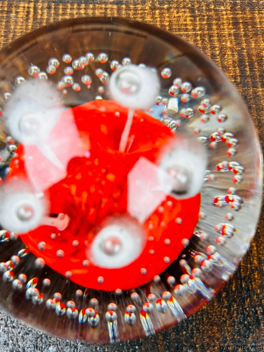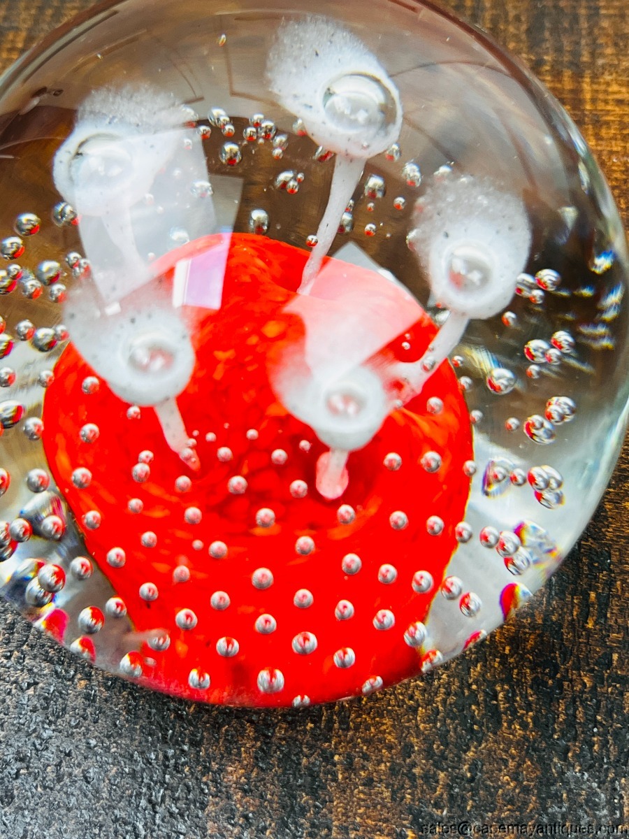 Wheaton Village Large Paperweight Suspended Bubbles Green Center White Flowers
