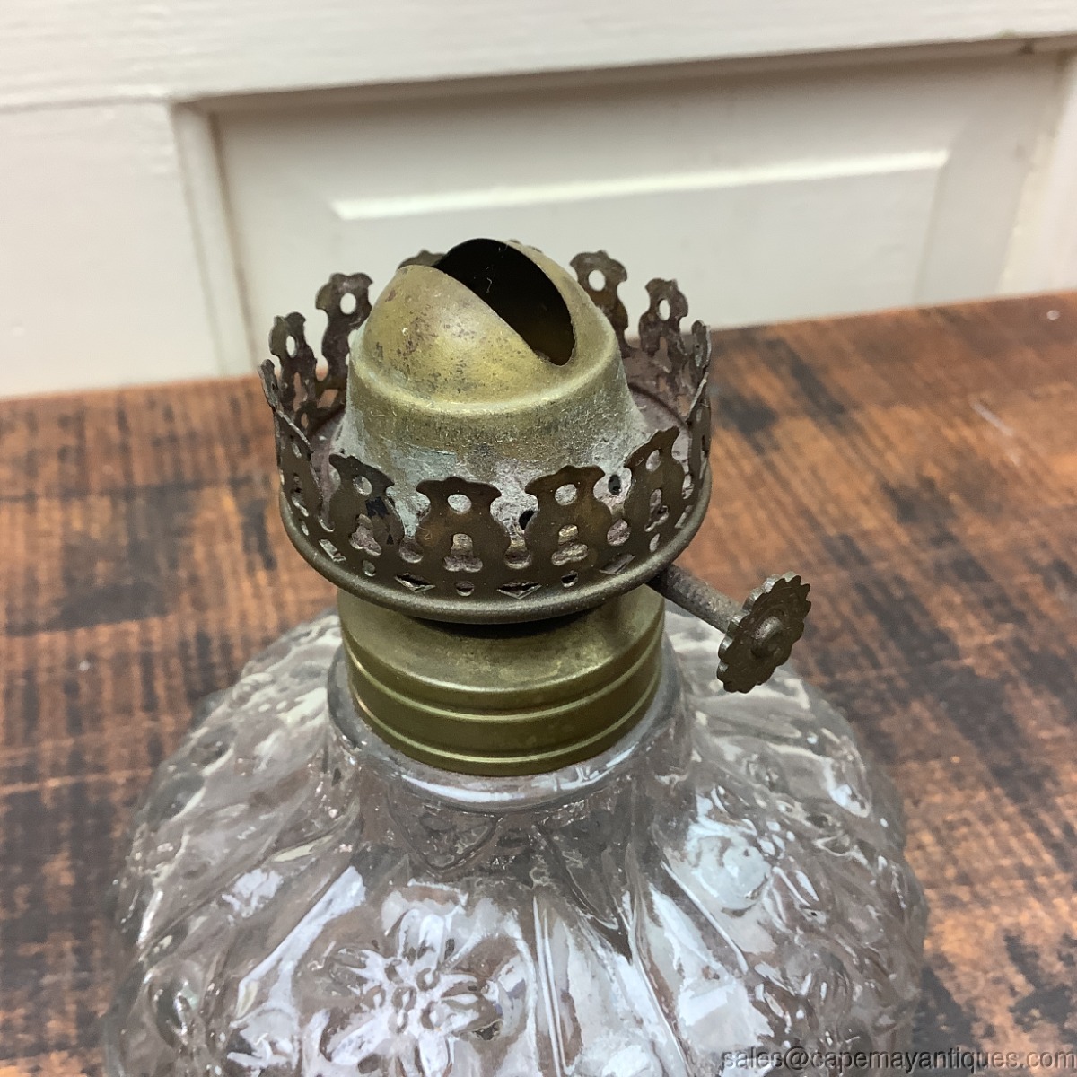 Plume & Atwood Miniature Oil Lamp Clear Glass Floral Raised Design w Shade 8" T