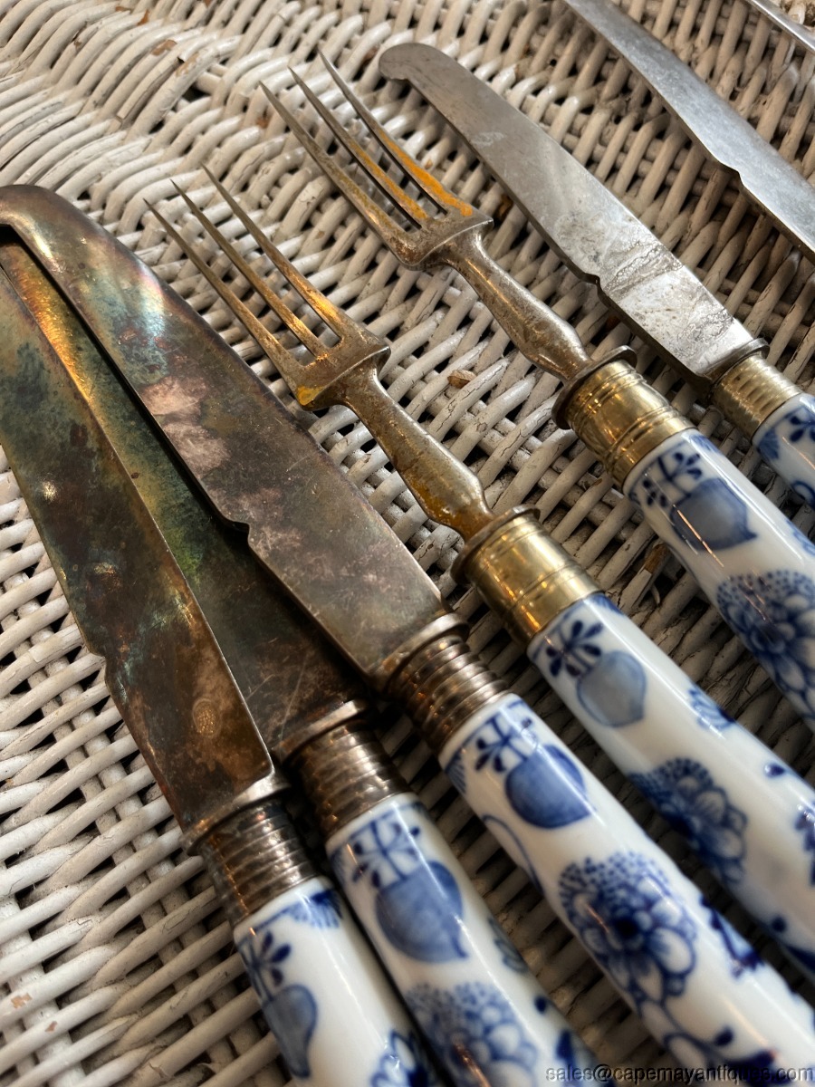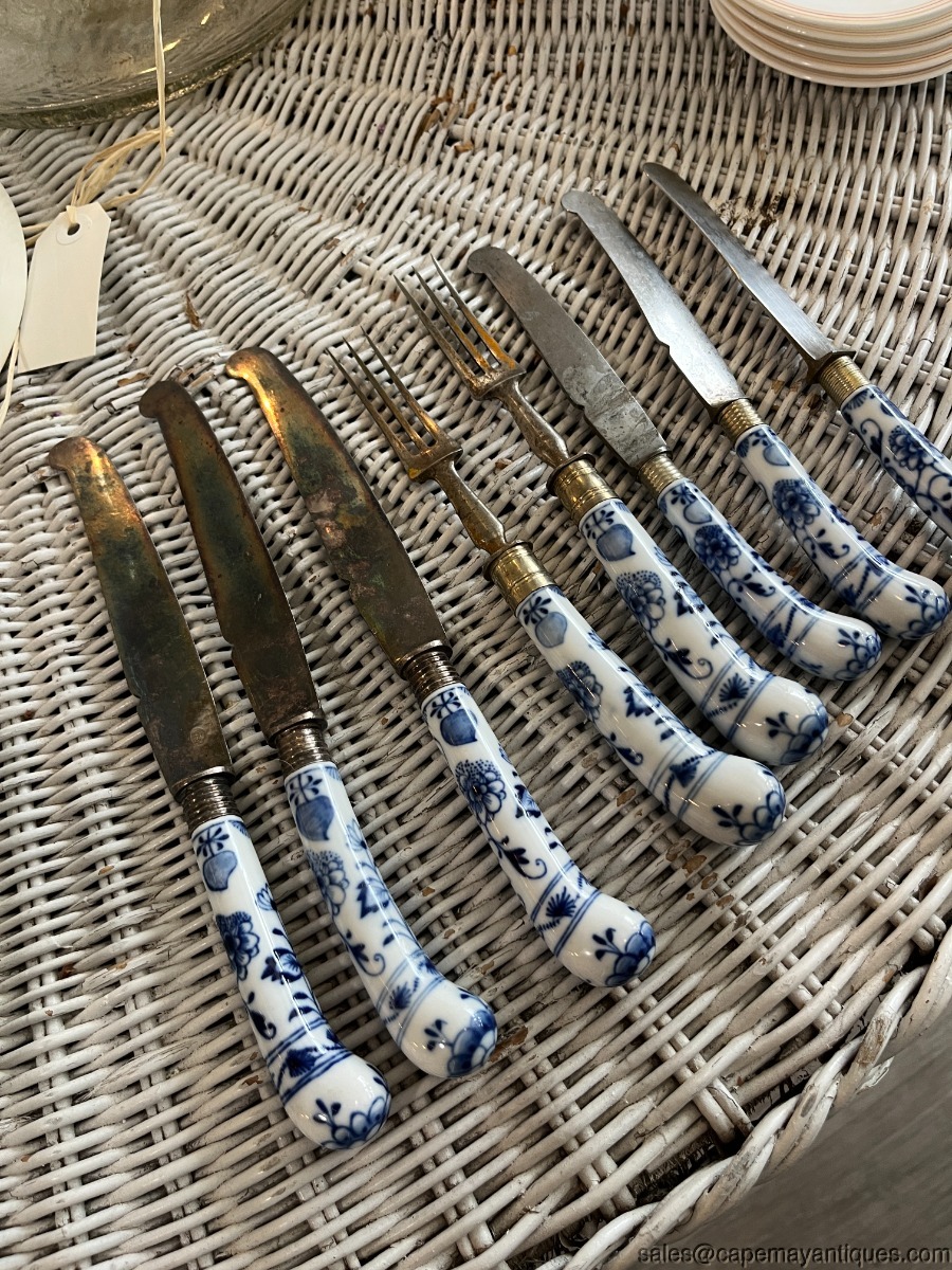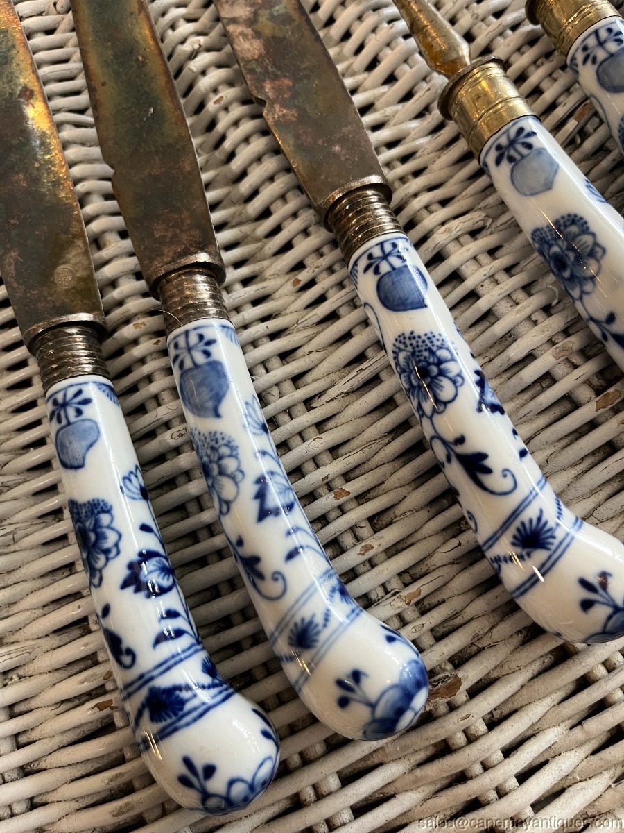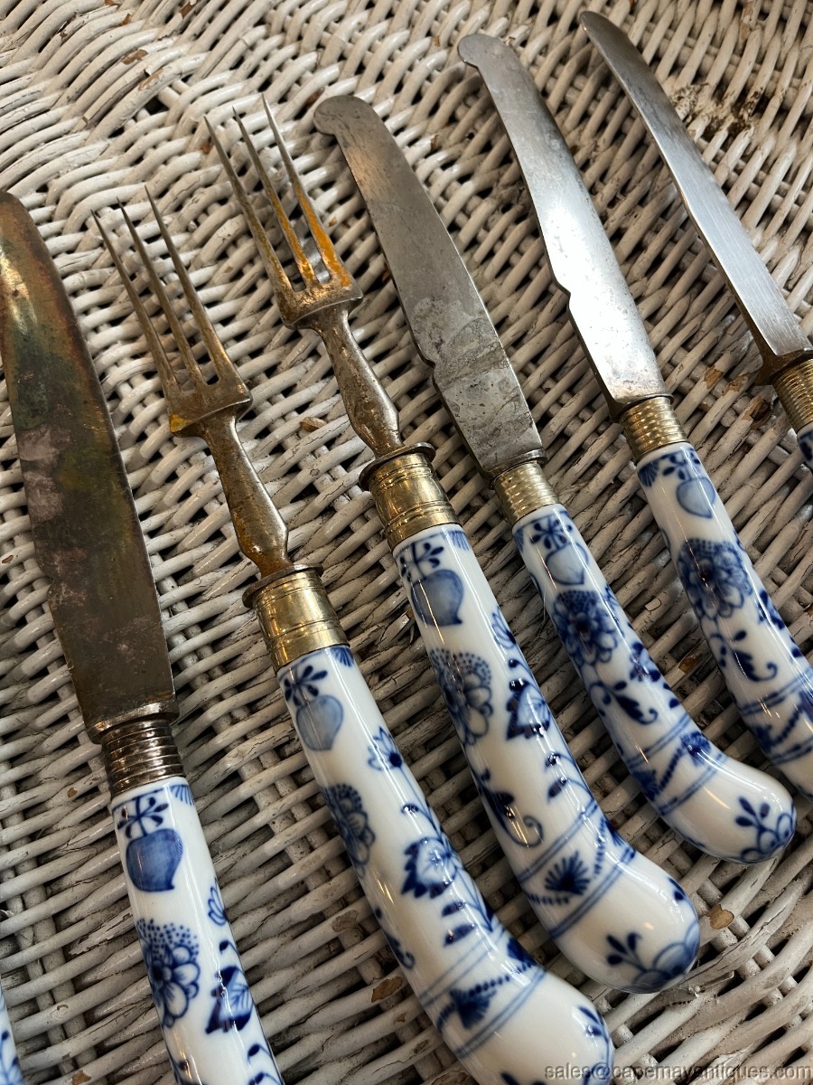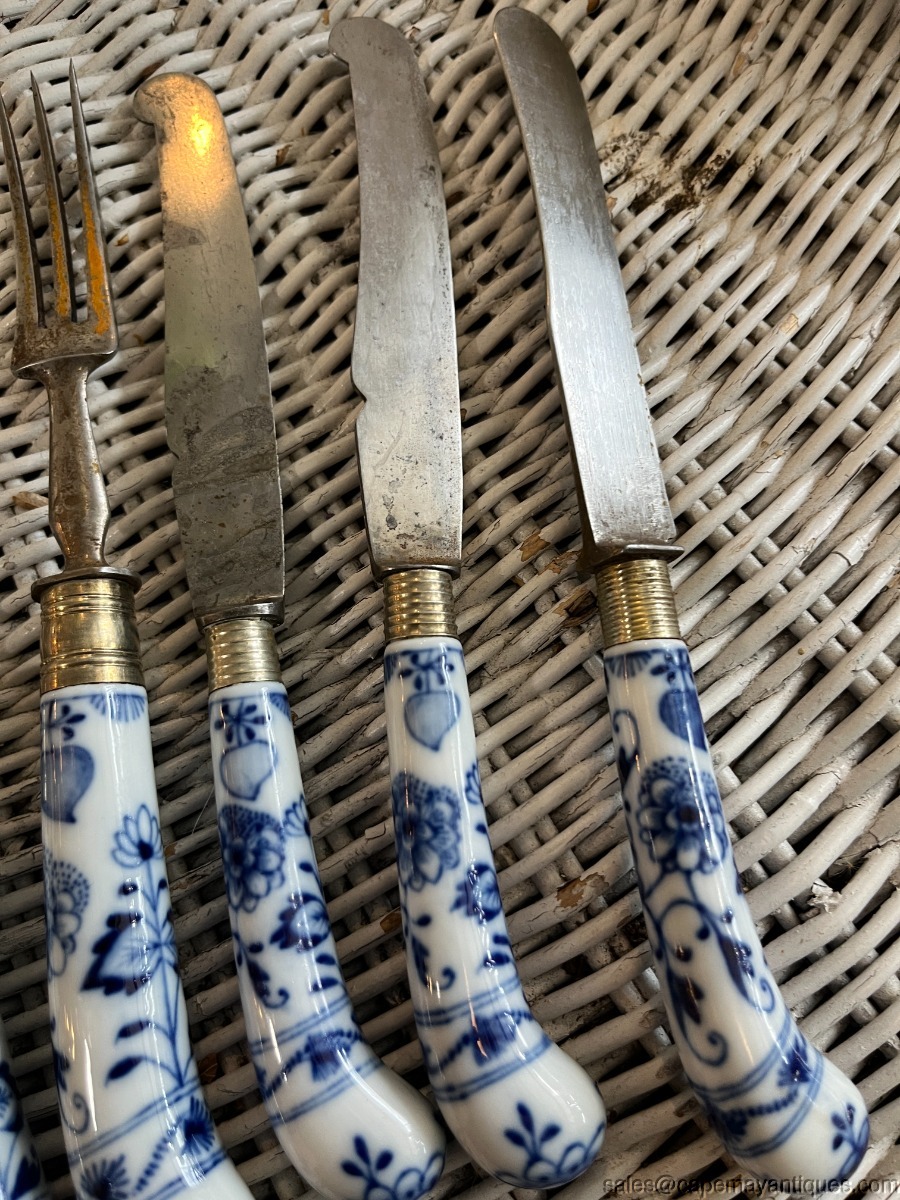 8 Meissen Blue Onion Lot of Knives Forks Flatware Fruit Knives Porcelain Handles