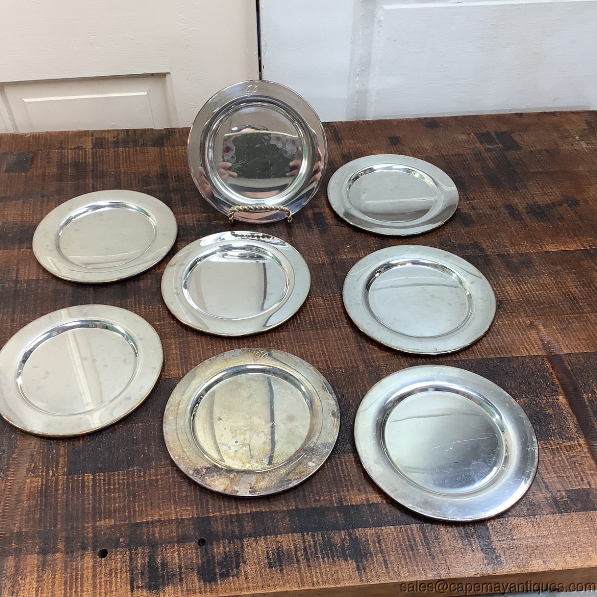 Lovely set of elegant silverplate marked Wm A Rogers small plates, perfect for bread and butter or appetizers. There are 8 at 6". Each one has a monogram P on the rim. Some do have some light utensil marks in their centers but overall, very good condition. No loss of silverplate.