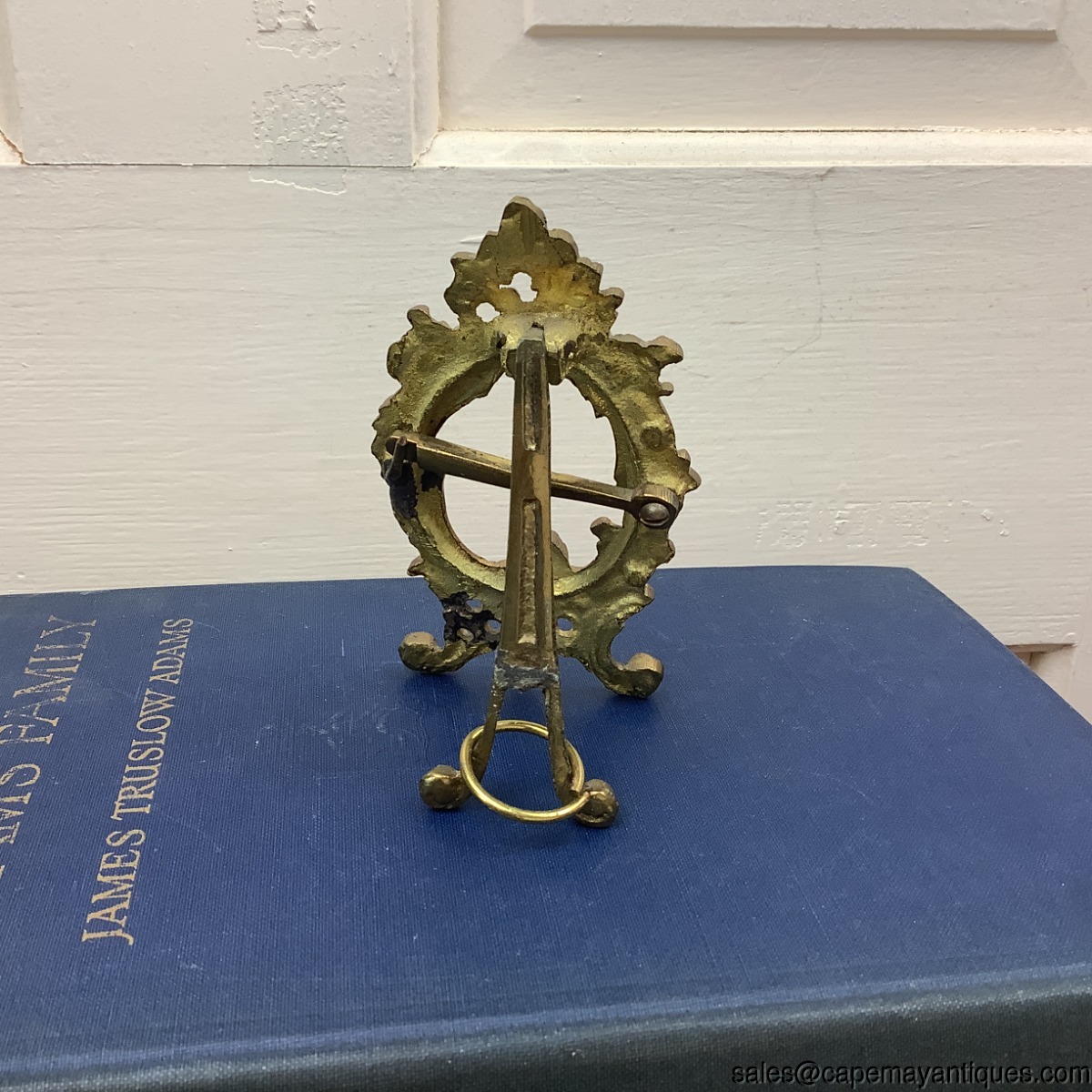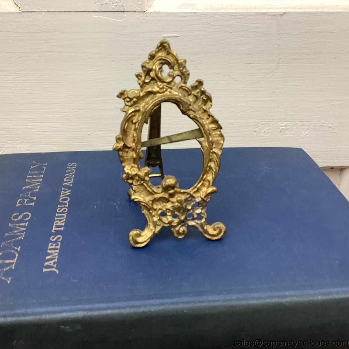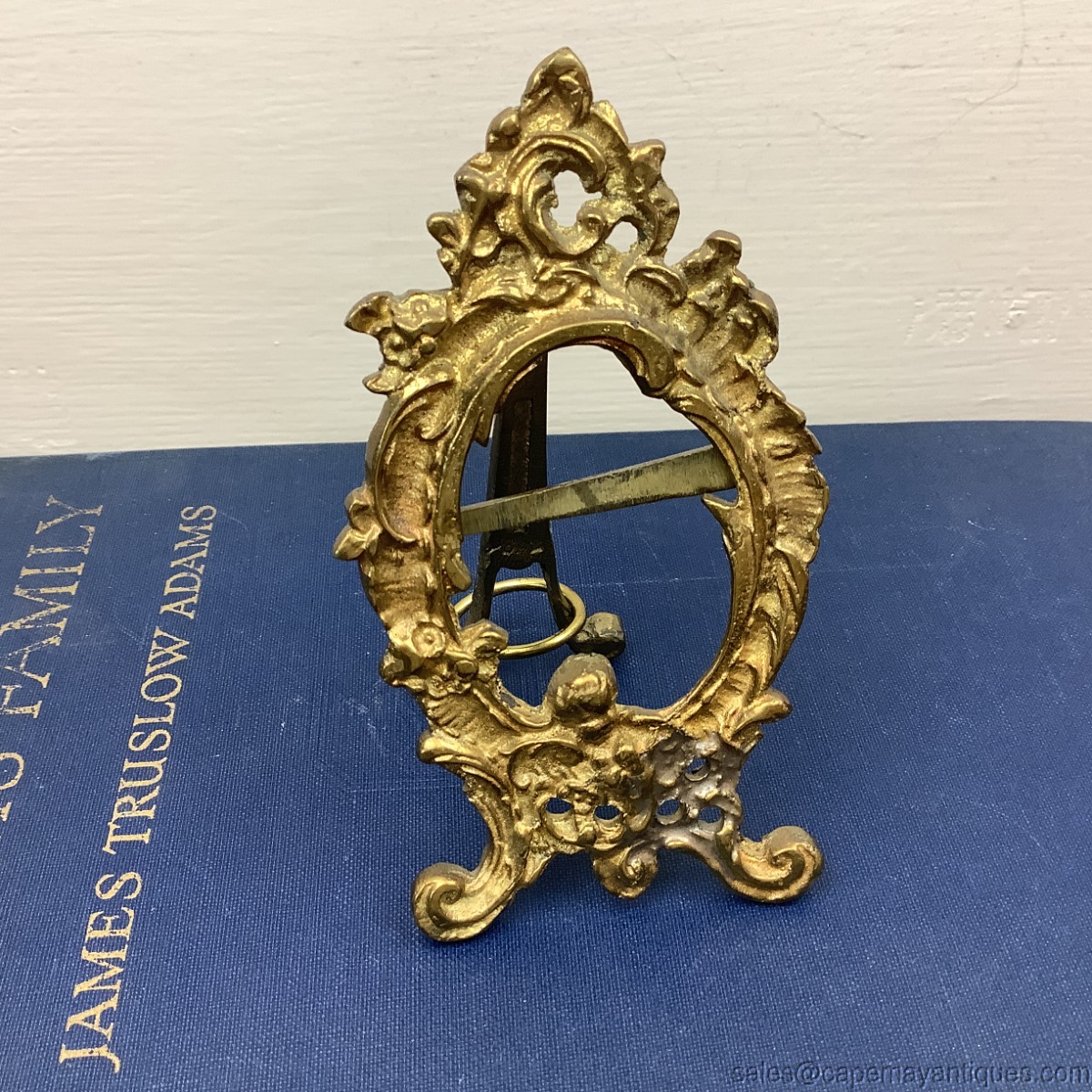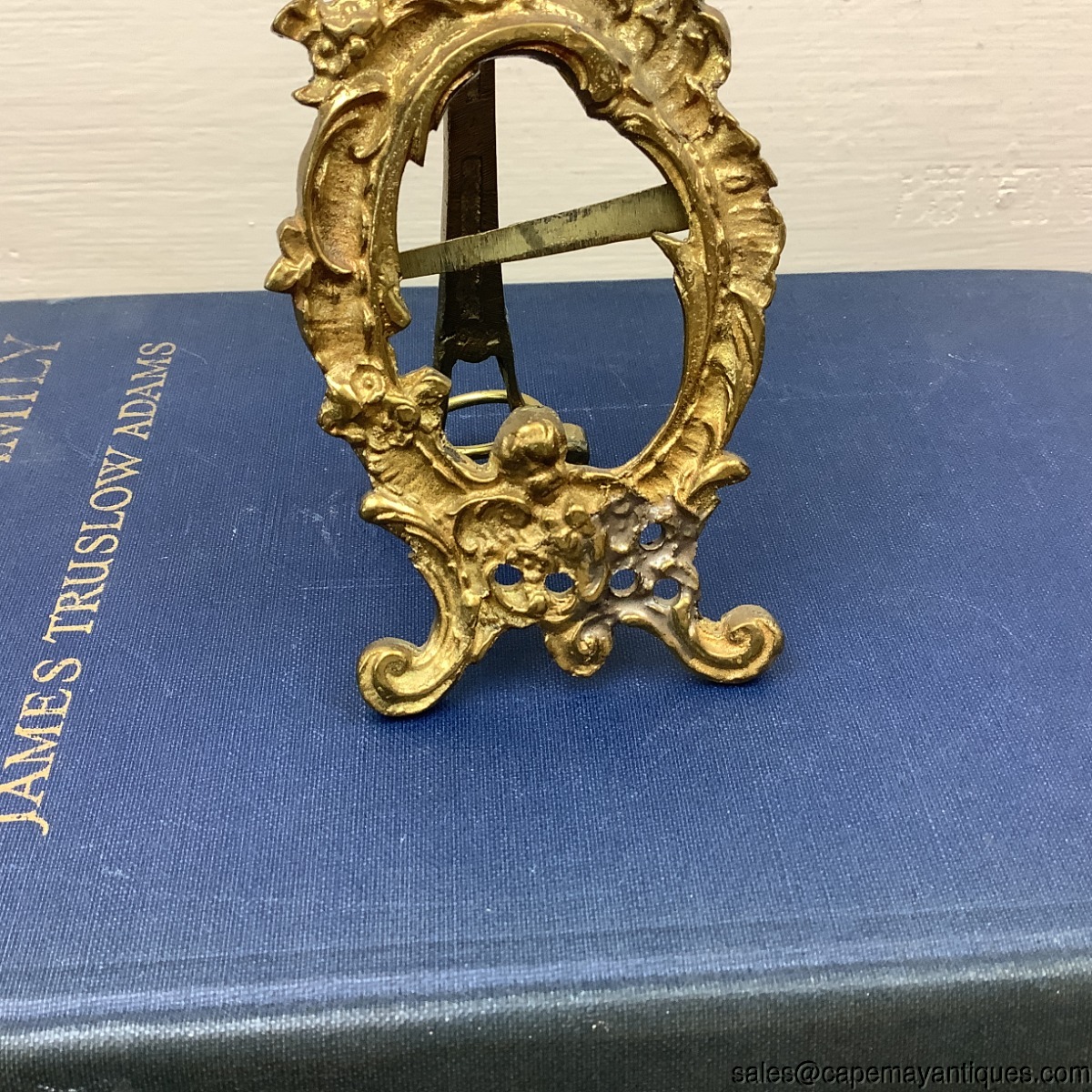 Antique Petite Tripod Photo Picture Frame Rococo Victorian Bronze Floral Scrolls
