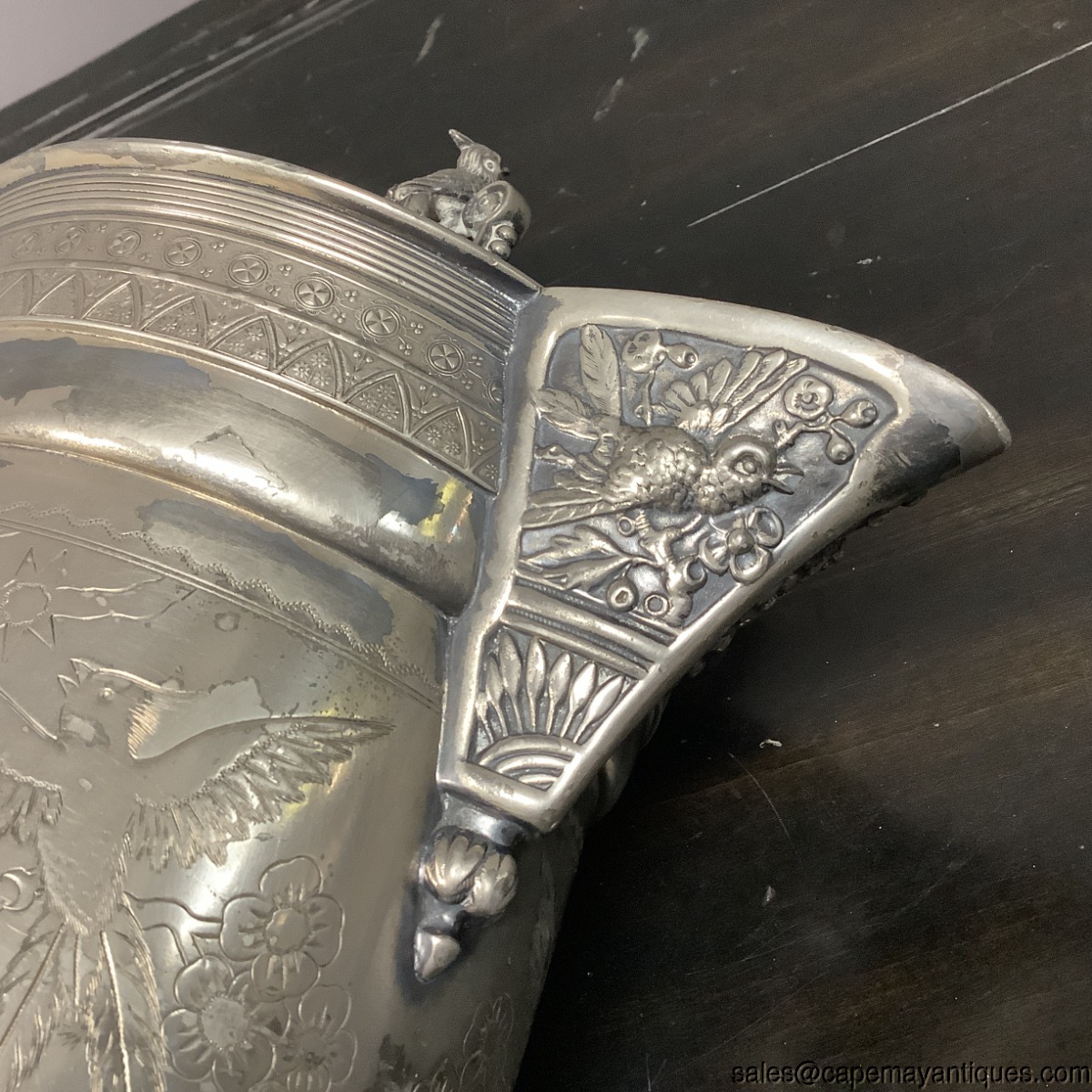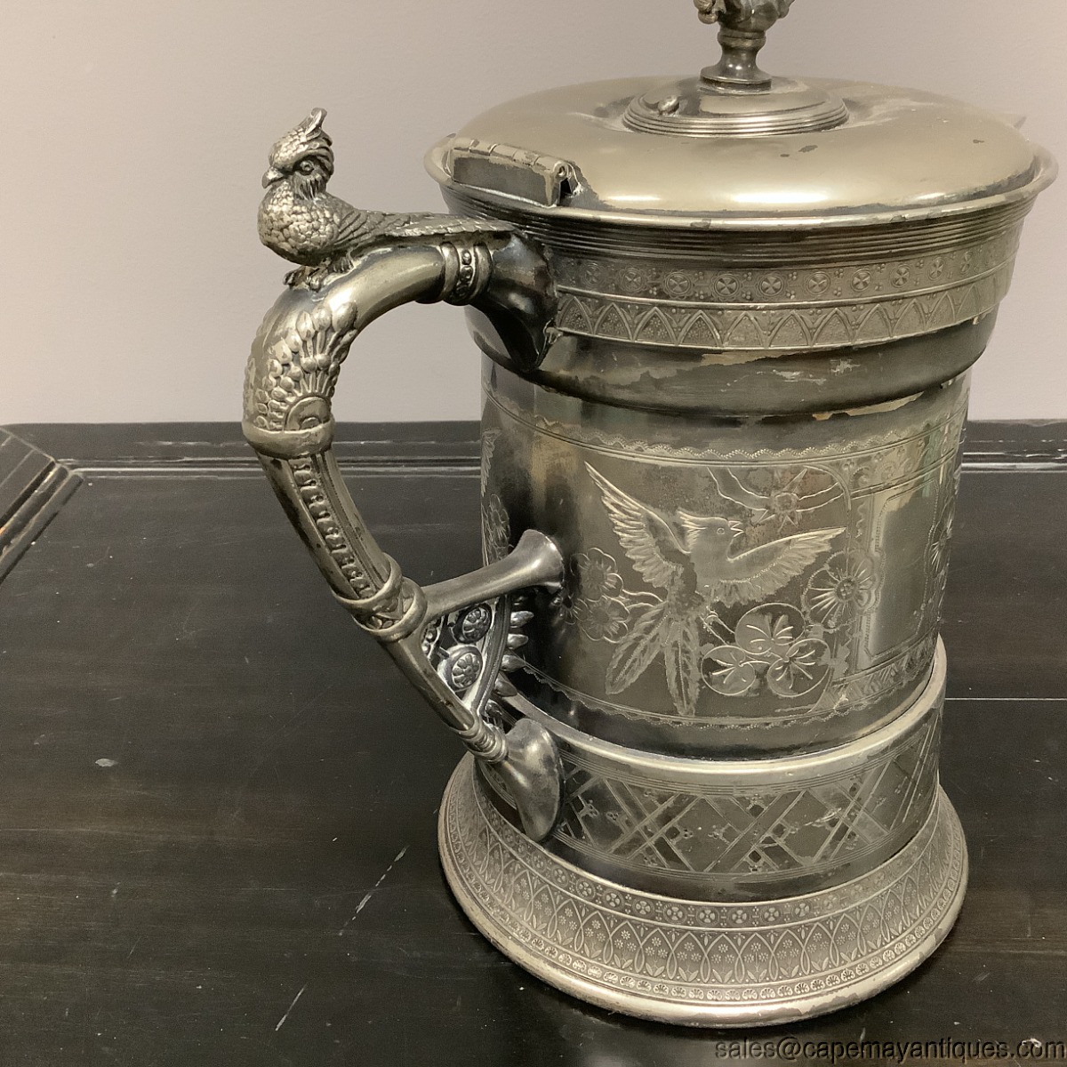 Antique Silver Plate Tankard Simpson Hall Miller Aesthetic Nouveau Figural Birds