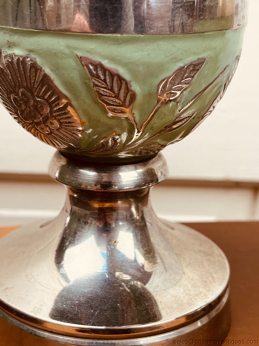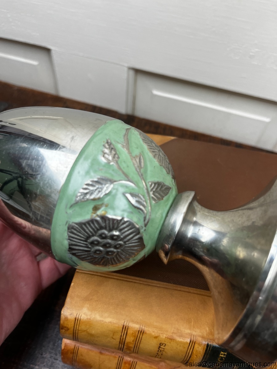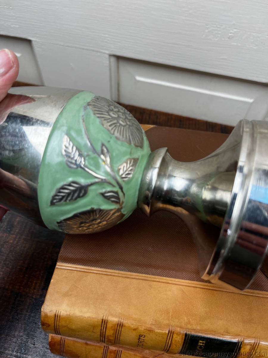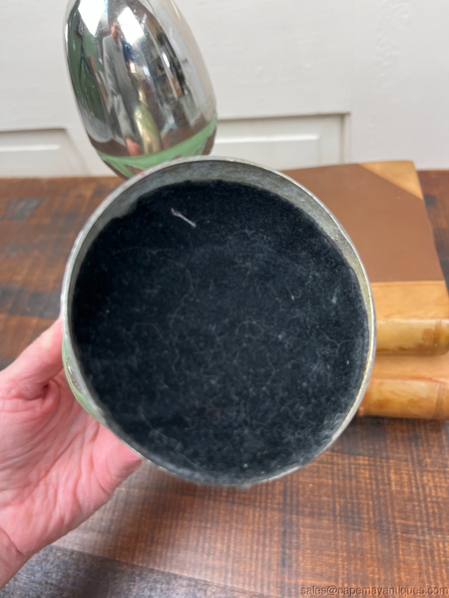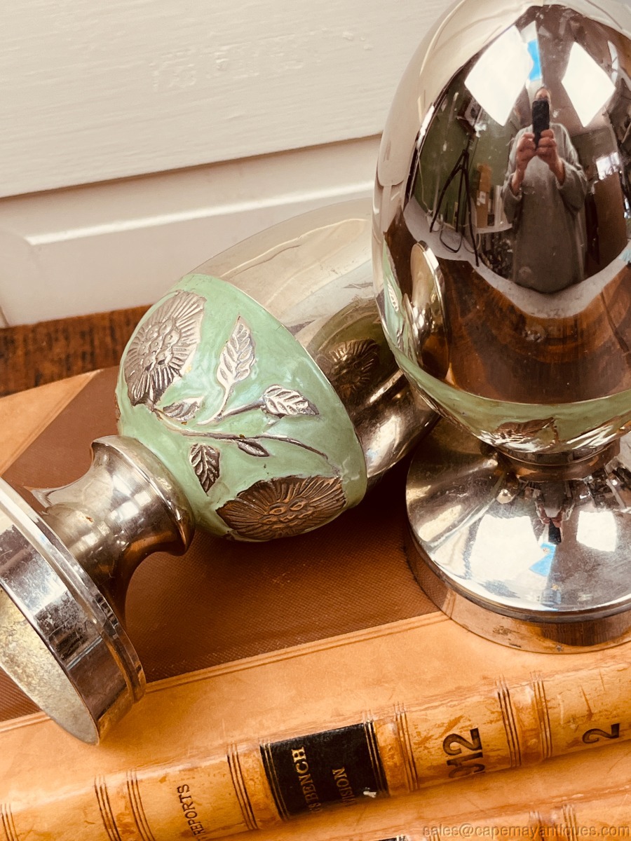 Decorative Silver Metal Egg Shaped Finials Table Top Decor Green Trim India Pair