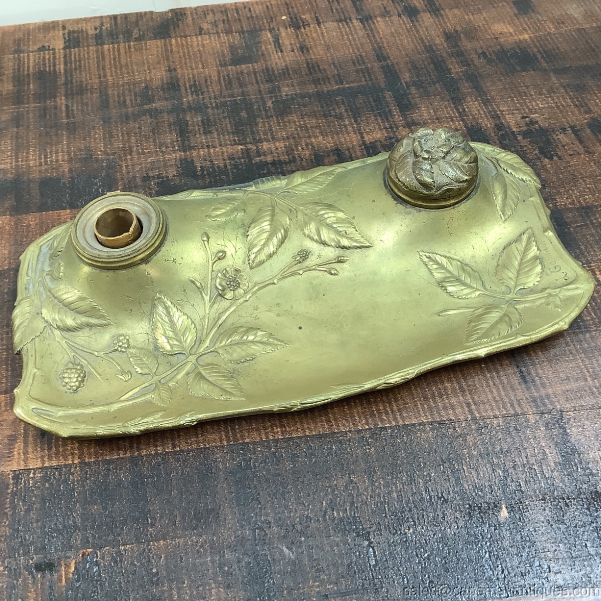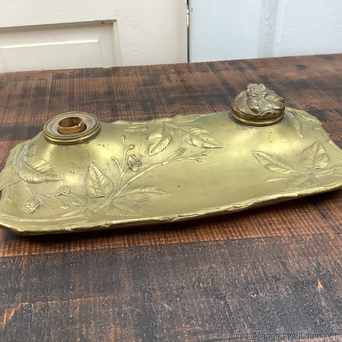Jean Garnier Inkwell Gilt Bronze Art Nouveau Leaves Berries 1853-1910 2 Wells