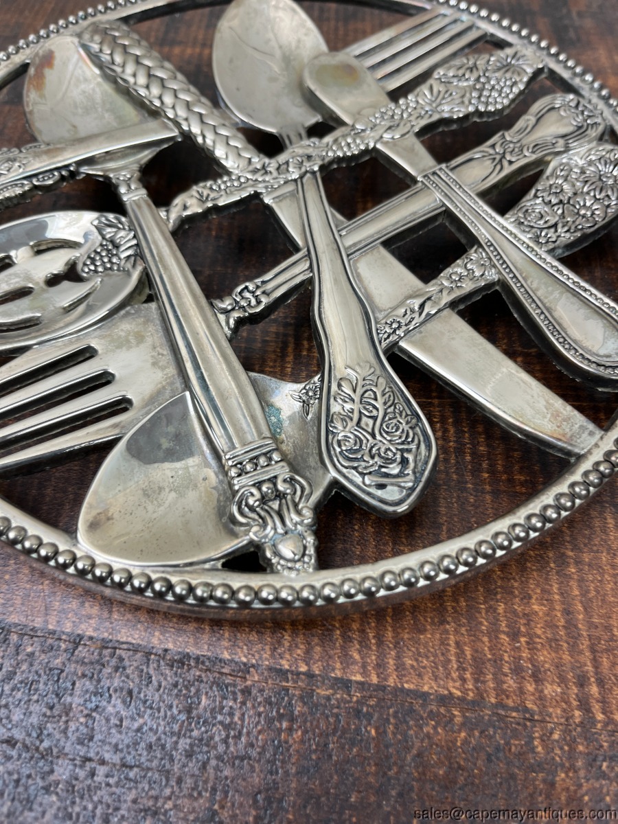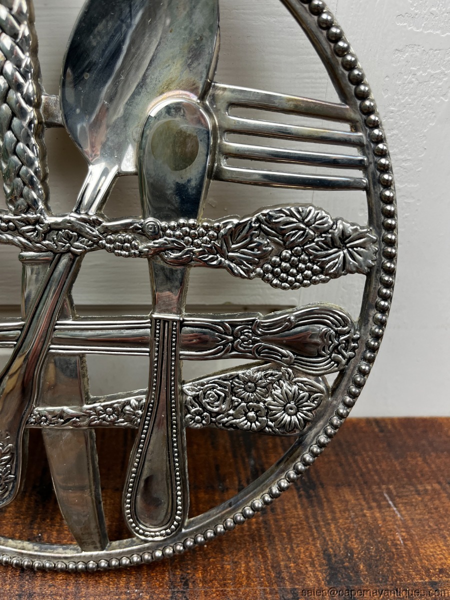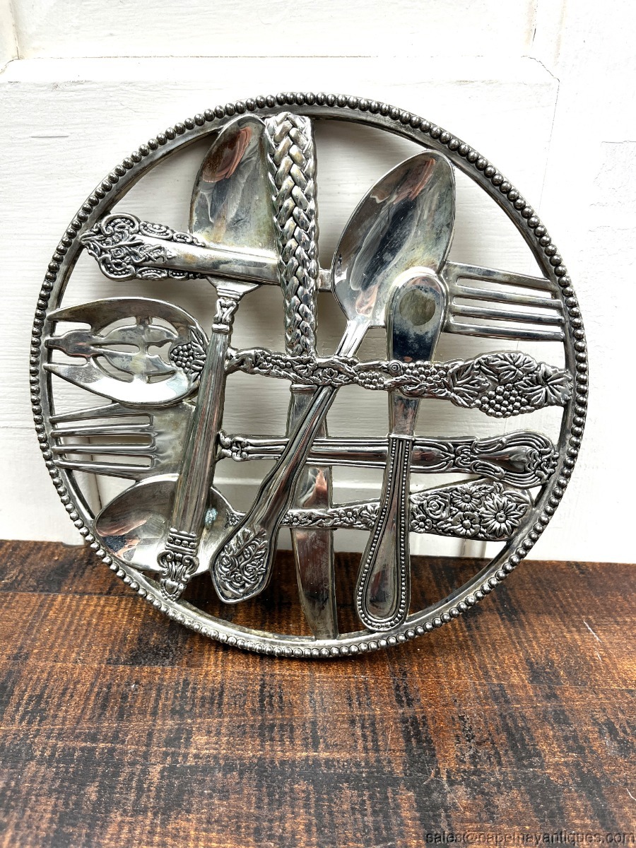 Silverplate Flatware Utensil Round Trivet Godinger Silver Art Hot Pad Wall Art