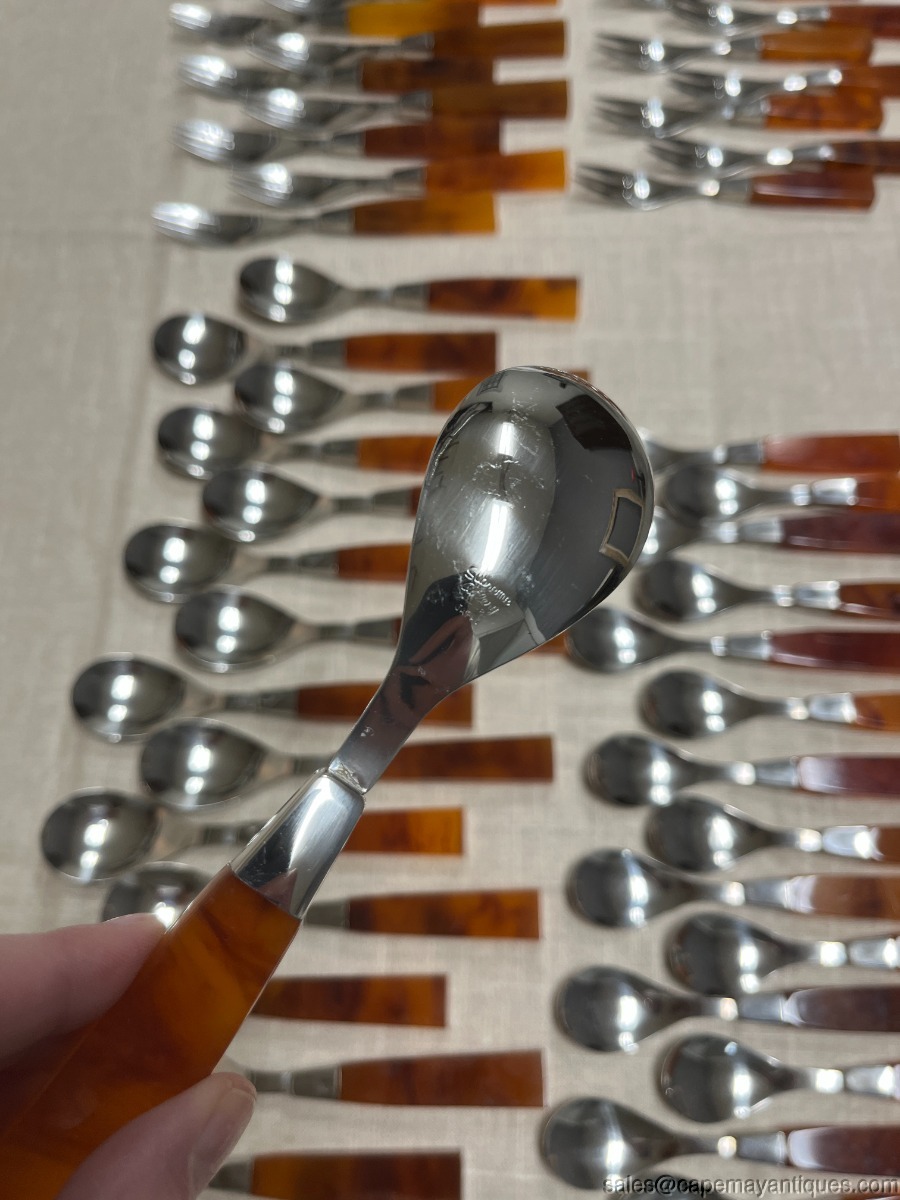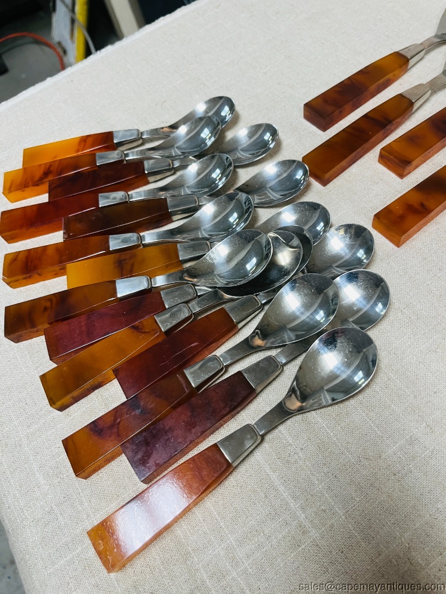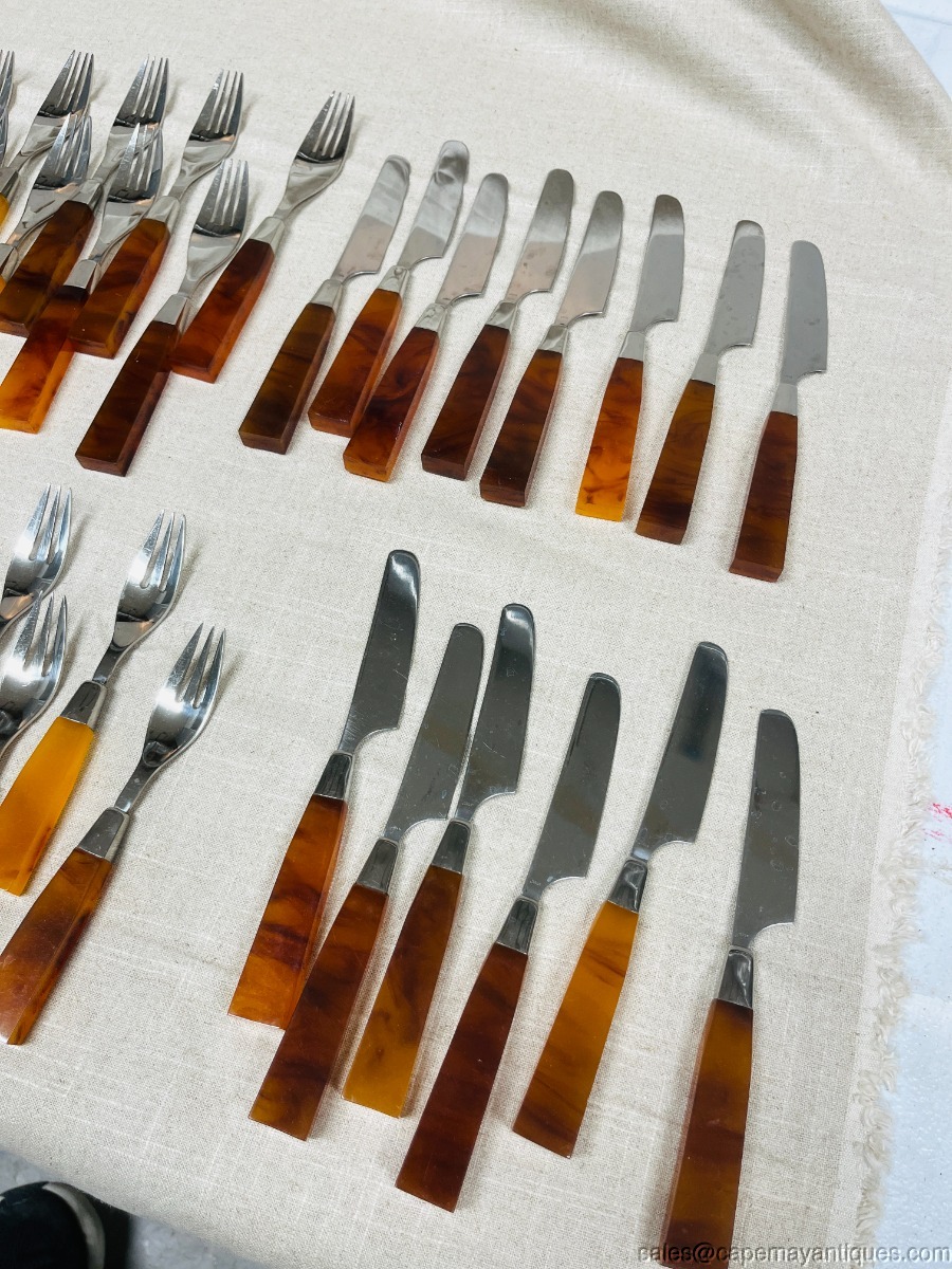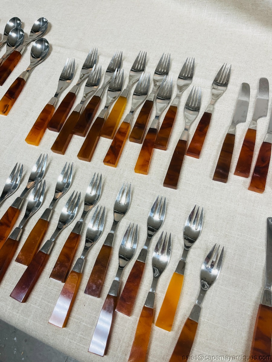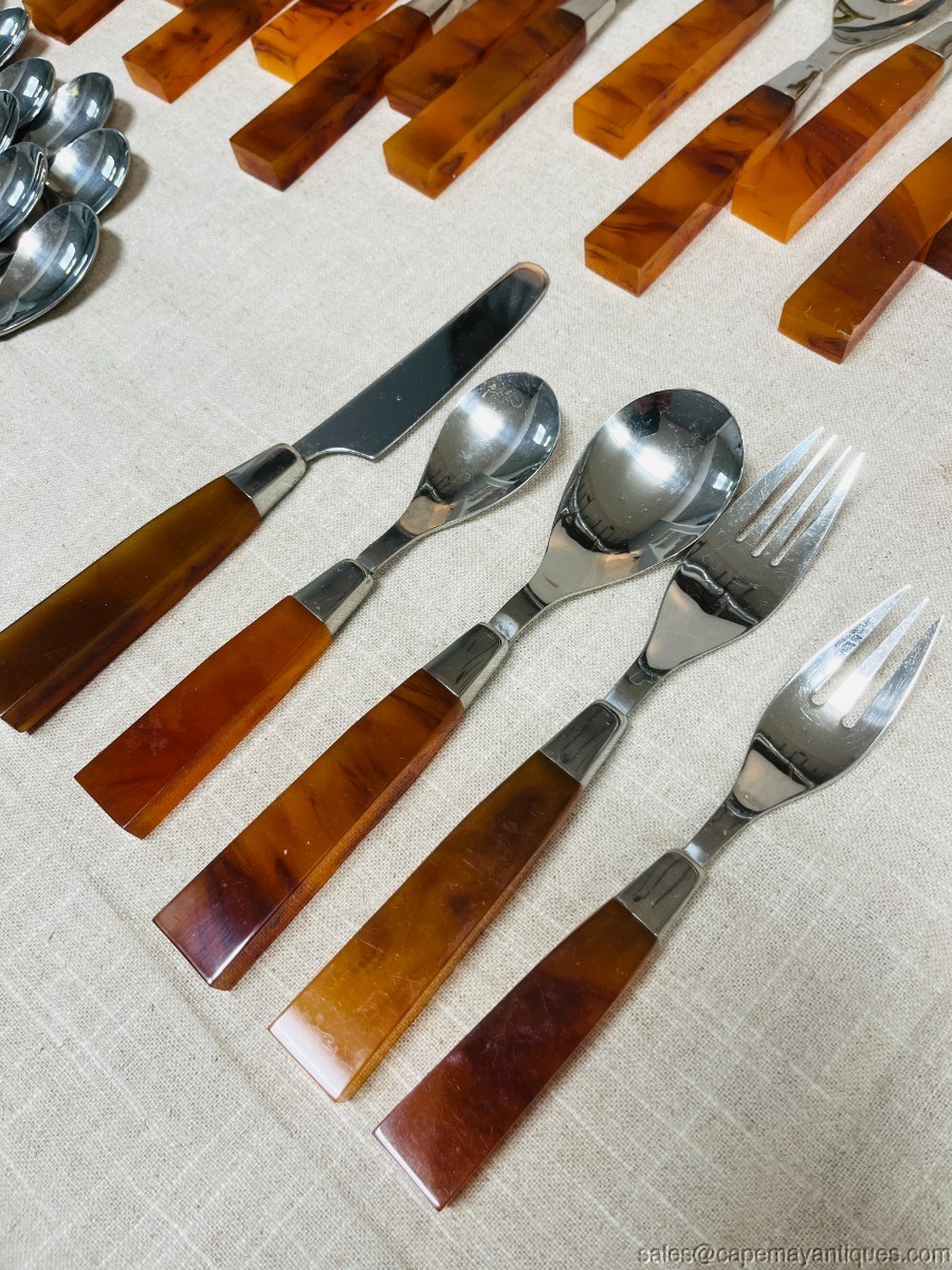 Supreme Cutlery 72 pc Amber Tortoise Shell Lucite Modern MCM 18-8 Flatware