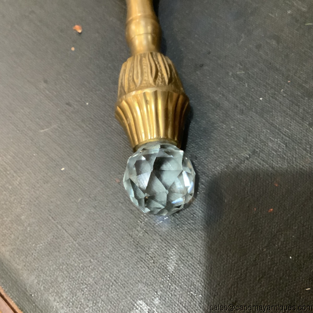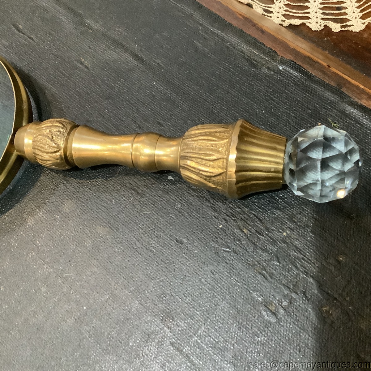 Vintage Magnifying Glass Long Brass Handle Crystal Faceted Finial End Desk Decor