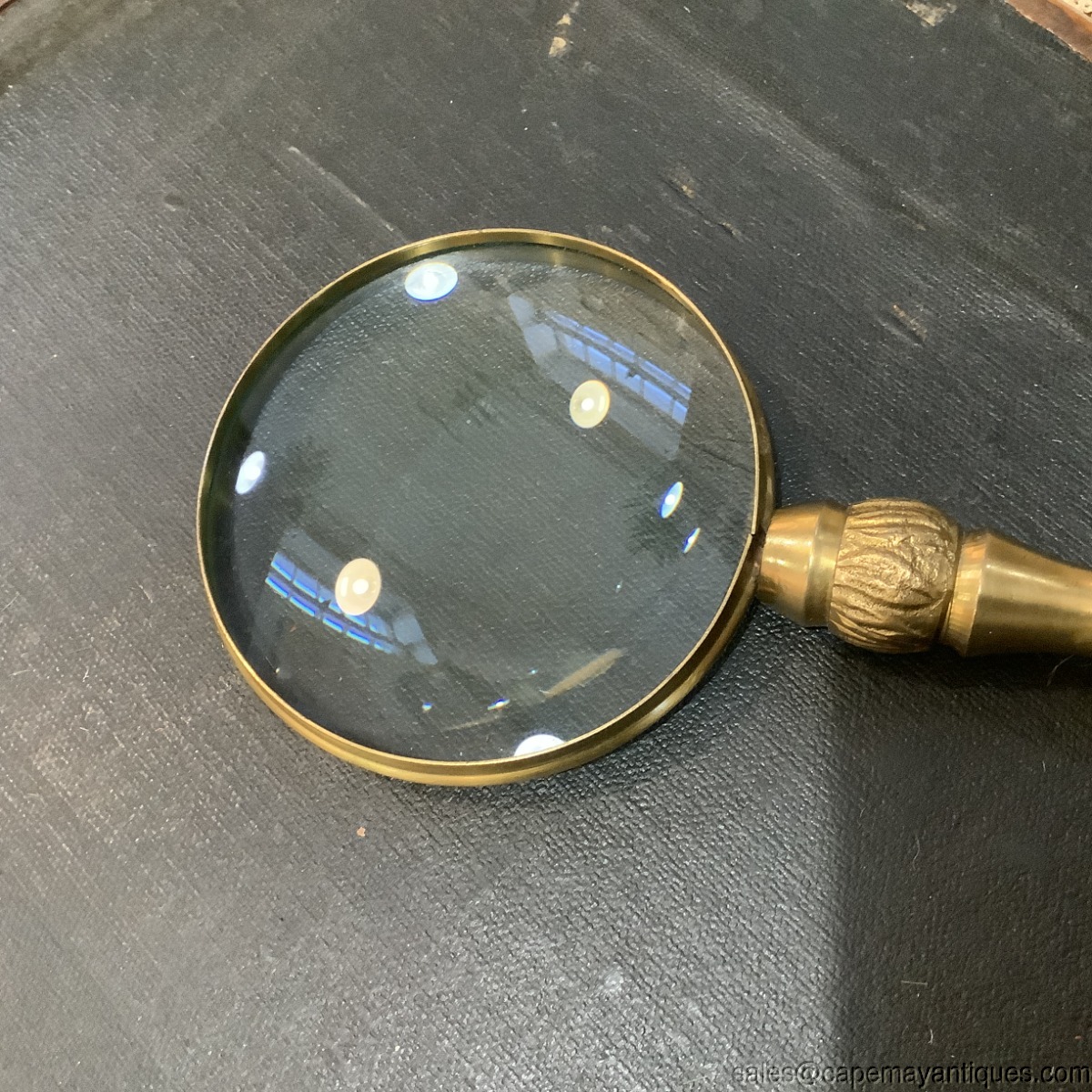 Fabulous vintage solid brass magnifying glass with long handle. Great desk top decor. 10" length with round magnifying glass 4" by 4". Pretty faceted crystal finial at bottom end. Good clean condition with no chips to the faceted finial or the magnifying glass itself. Clean with no scratch marks.